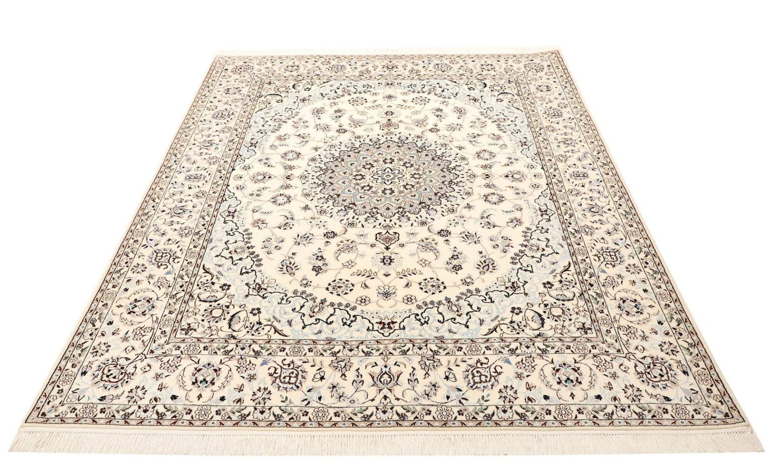 Nain Teppich 165 x 210 cm, florales Muster, handgeknüpft, Perserteppich