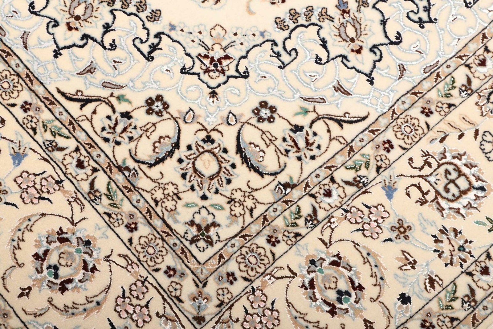 Das florale Muster dieses Nain Teppichs ist typisch für die Teppiche dieser Region und ist bekannt für seine filigranen Details. Solche Muster sind nicht nur dekorativ, sondern tragen auch Symbolik, die in der persischen Kultur schwergewichtig ist. Blumenmotive stehen oft für Schönheit, Natur und die Verbindung zur Spiritualität. Die Farben sind so gewählt, dass sie sowohl zeitlos als auch modern wirken, was den Teppich zu einem vielseitigen Element in verschiedenen Einrichtungsstilen macht. Egal, ob minimalistisches Design oder klassische Inneneinrichtung, der Nain Teppich lässt sich problemlos integrieren und wird schnell zum Blickfang in jedem Raum.