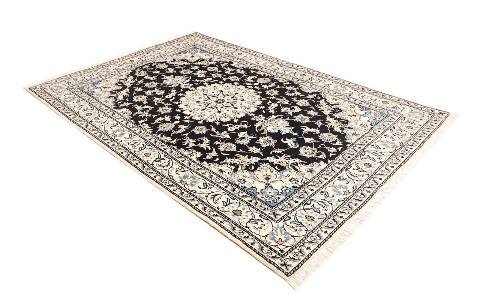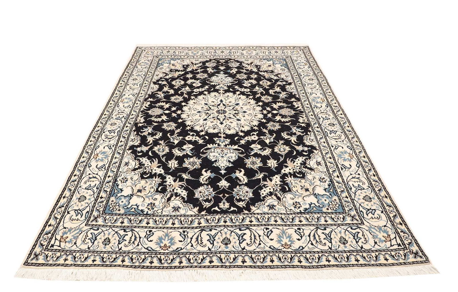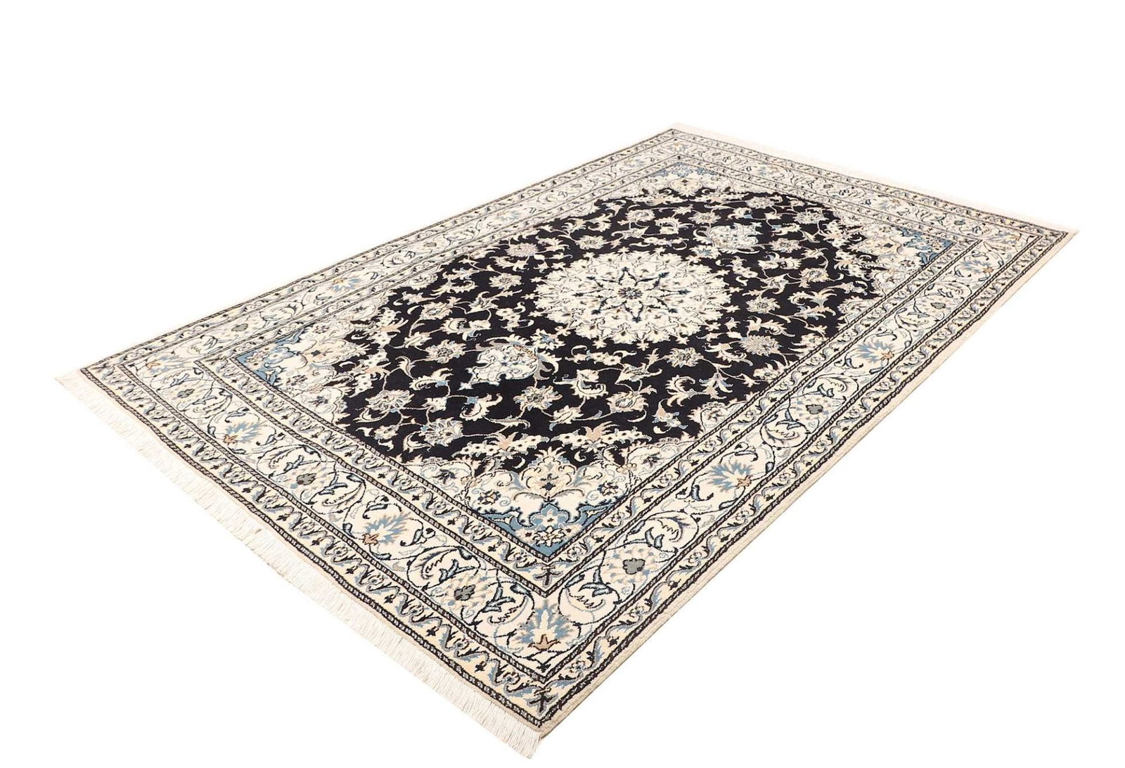 Nain Teppich 168 x 246 cm, florales Muster, Schurwolle, handgeknüpft