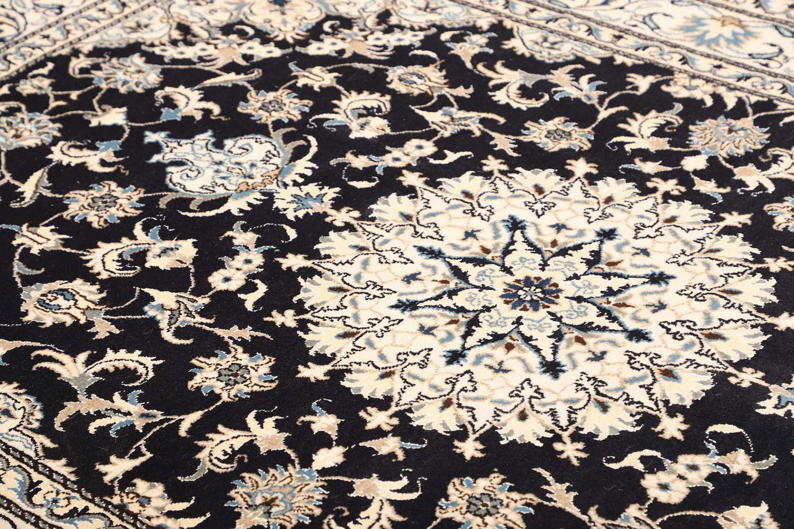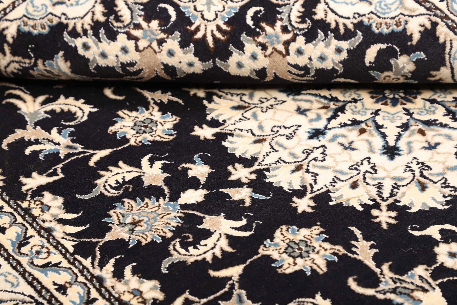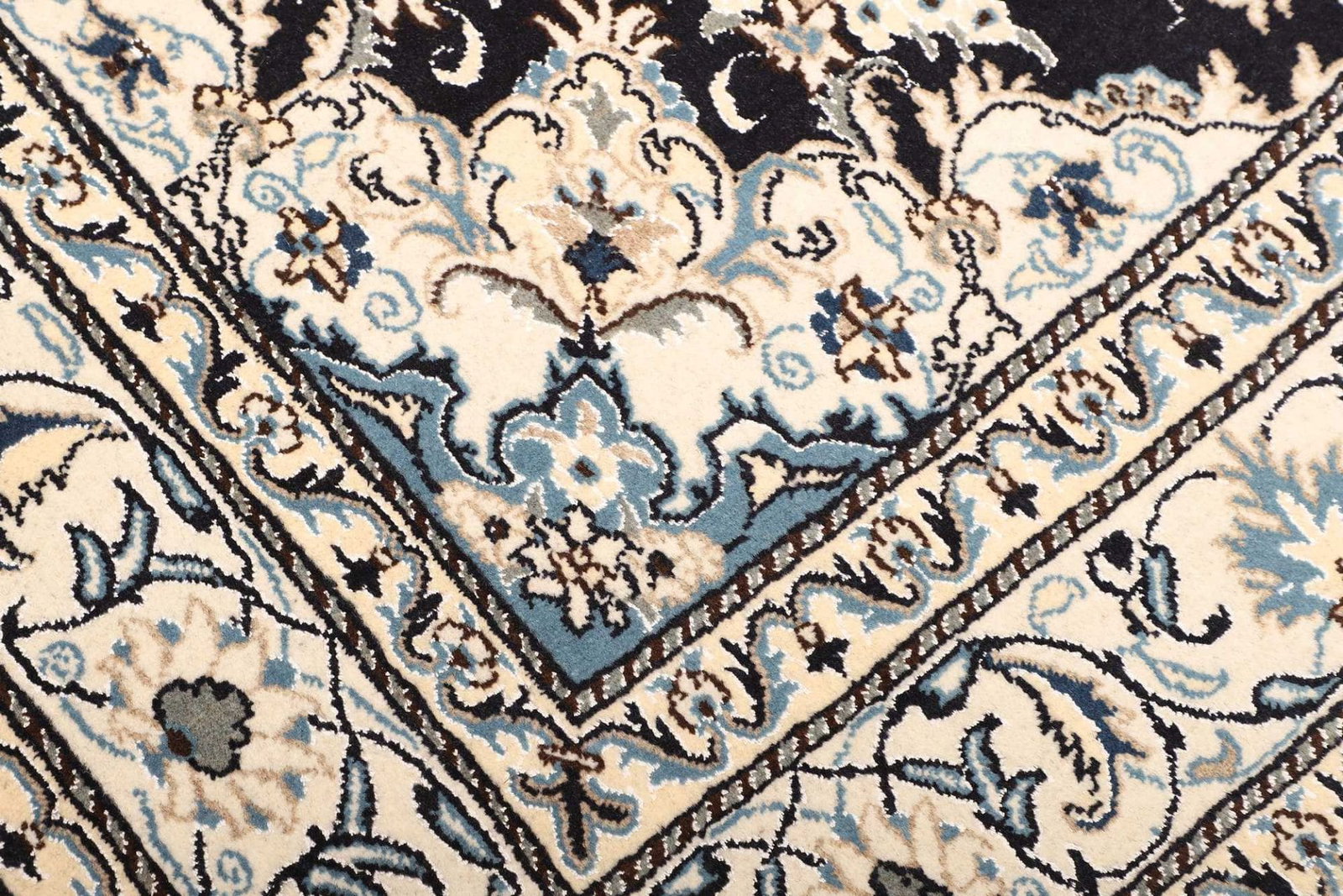 Das florale Muster dieses Nain Teppichs ist eine Hommage an die Natur und deren Schönheit. Diese Designs sind oft symbolisch und stehen für Wohlstand, Fruchtbarkeit und Harmonie. In der persischen Kultur haben florale Motive eine tiefere Bedeutung und repräsentieren den ewigen Kreislauf des Lebens. Das kunstvolle Zusammenspiel von Formen und Farben macht jeden Teppich zu einem Unikat, das nicht nur als Bodenbelag dient, sondern auch als Kunstwerk betrachtet werden kann.