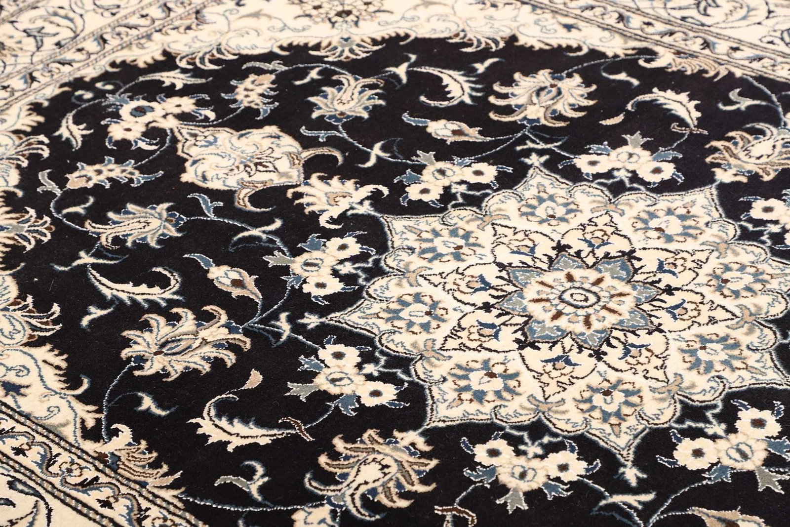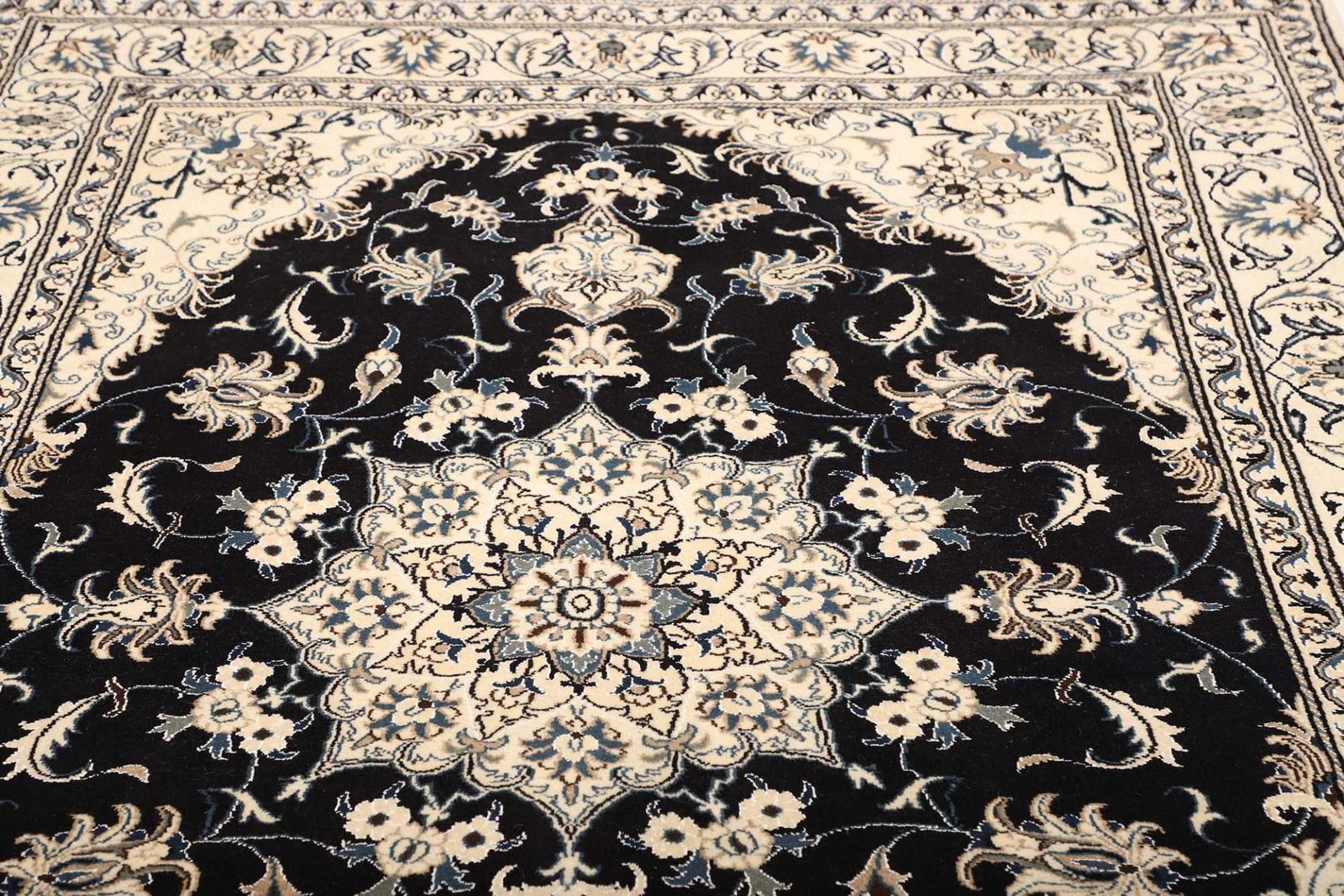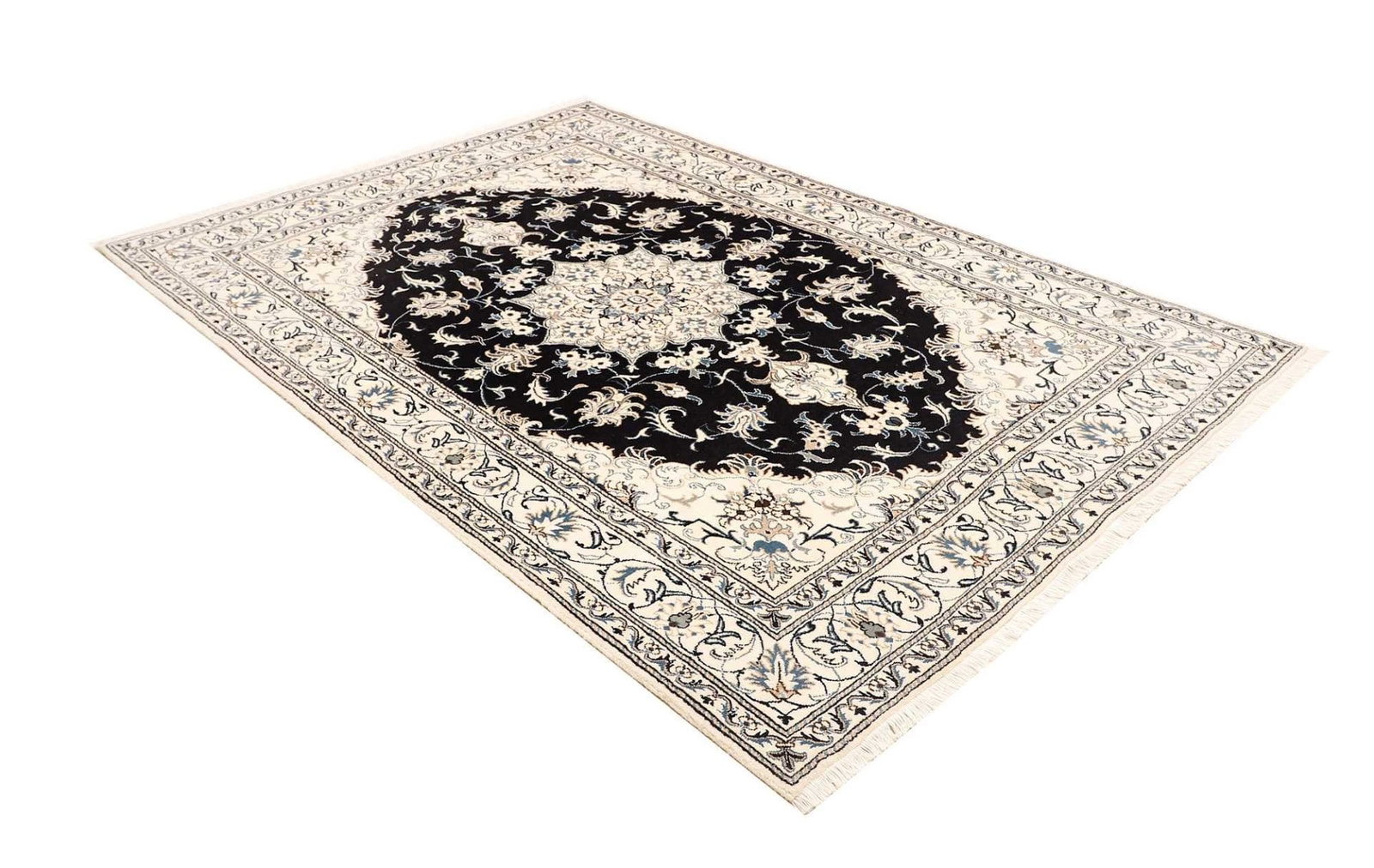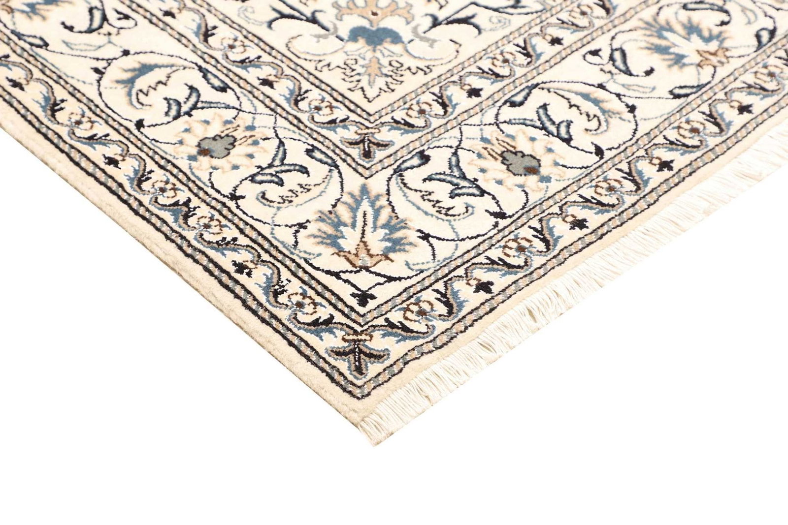 Nain Teppiche zeichnen sich durch ihre exquisite Handknüpfung, die hohe Knotendichte und ihre atemberaubenden floralen Designs aus. Sie sind ein Symbol für persische Teppichkunst und gehören zu den hochwertigsten und begehrtesten Teppichen weltweit.