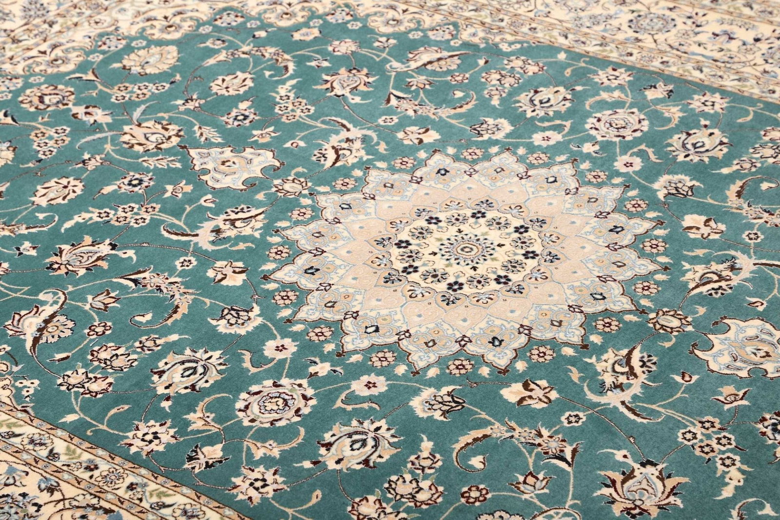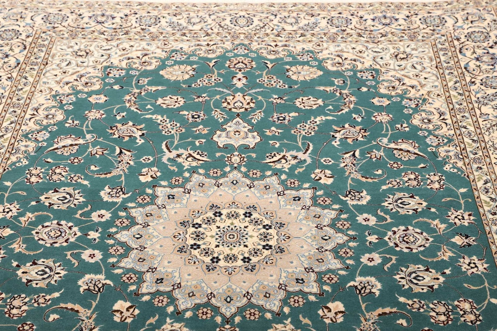 8887$Ursprünglicher Preis war: 8887$6219$Aktueller Preis ist: 6219$Nain Teppich | Knotendichte: ca. 900.000 Knoten/m² | Material: 100% Schurwolle (Flor), 100% Baumwolle (Kette) | Größe: 171 x 244 cm | Handgeknüpfte Qualität | Herkunft: Iran | Zustand: Exzellent | Muster: Klassische florale Motive
