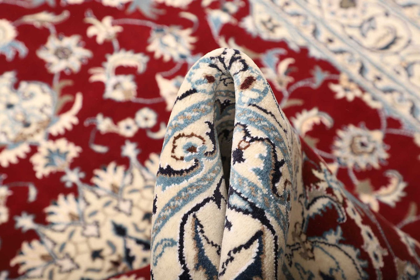 Der florale Muster des Nain Teppichs ist nicht nur ein ästhetisches Merkmal, sondern auch symbolisch. Blumenmotive sind in der persischen Kultur tief verwurzelt und stehen oft für Liebe, Natur und Harmonie. Die Verwendung von lebendigen Farben kombiniert mit zarten Pastelltönen macht diesen Teppich zu einem Blickfang in jedem Raum. Die floralen Designs werden oft von geometrischen Formen umrahmt, die für Stabilität und Struktur stehen. Diese Kombination sorgt für ein harmonisches Gesamtbild und passt sowohl in klassische als auch in moderne Einrichtungsstile.