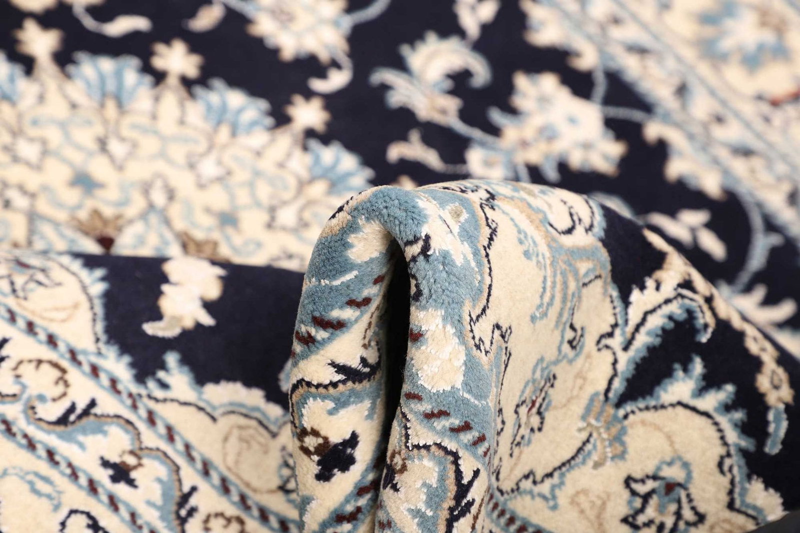 Die floralen Muster, die diesen Teppich zieren, sind das Ergebnis jahrhundertelanger Tradition und kultureller Einflüsse. Was die Designs der Nain Teppiche so einzigartig macht, ist die Kombination von traditionellen und modernen Elementen. Die Blumen, Ranken und ornamentalen Motive, die im Teppich verwoben sind, erzählen Geschichten aus der persischen Mythologie und der islamischen Kunst. Diese Muster werden oft in sanften, harmonischen Farben gehalten, die sich mühelos in jede Art von Innenraum einfügen.