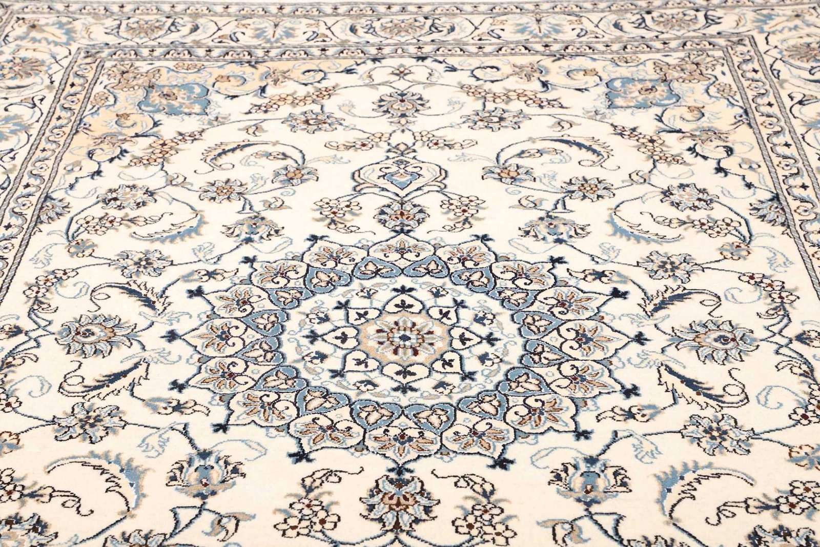 Der Nain Teppich stammt aus der gleichnamigen Stadt Nain im Iran, die für ihre herausragenden Teppichknüpftechniken bekannt ist. Diese Stadt liegt in der Provinz Isfahan und hat eine lange Tradition in der Teppichherstellung, die bis ins 16. Jahrhundert zurückreicht. Nain-Teppiche zeichnen sich durch ihre charakteristischen Designs und die Verwendung hochwertiger, natürlicher Materialien aus. Die Handwerker in Nain sind für ihre außergewöhnlichen Fähigkeiten und ihre Liebe zum Detail bekannt, was sich in jedem gefertigtem Stück widerspiegelt. Die Teppiche aus dieser Region sind nicht nur geschätzte Wohnaccessoires, sondern auch Sammlerstücke, die oft von Generation zu Generation weitergegeben werden.