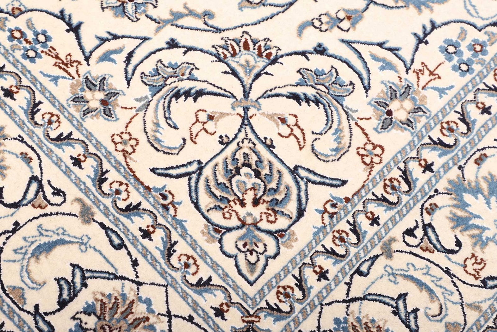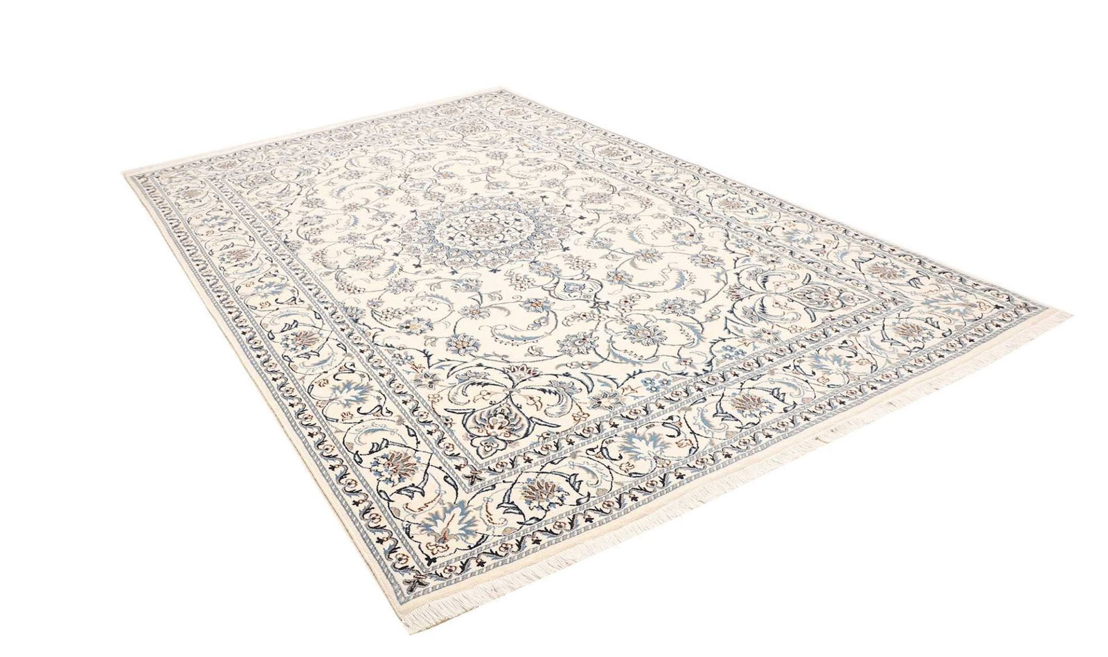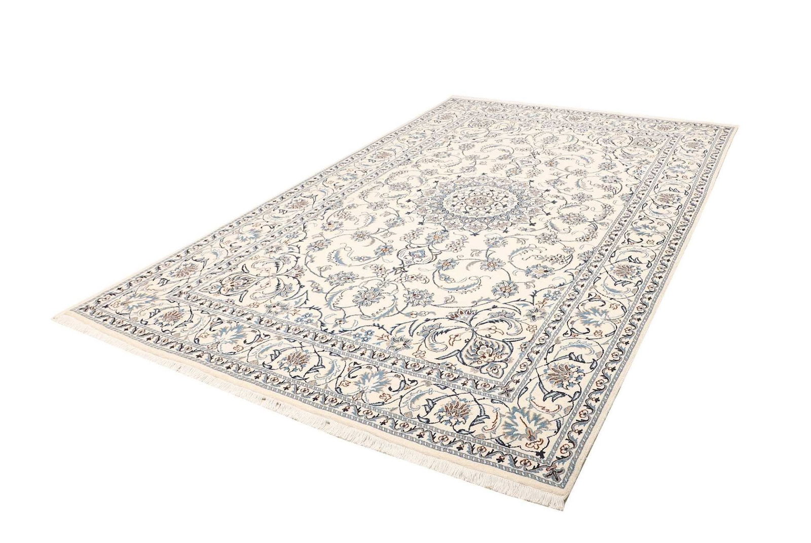 Nain Teppich 198 x 300 cm, florale Muster, handgeknüpft, Perserteppich