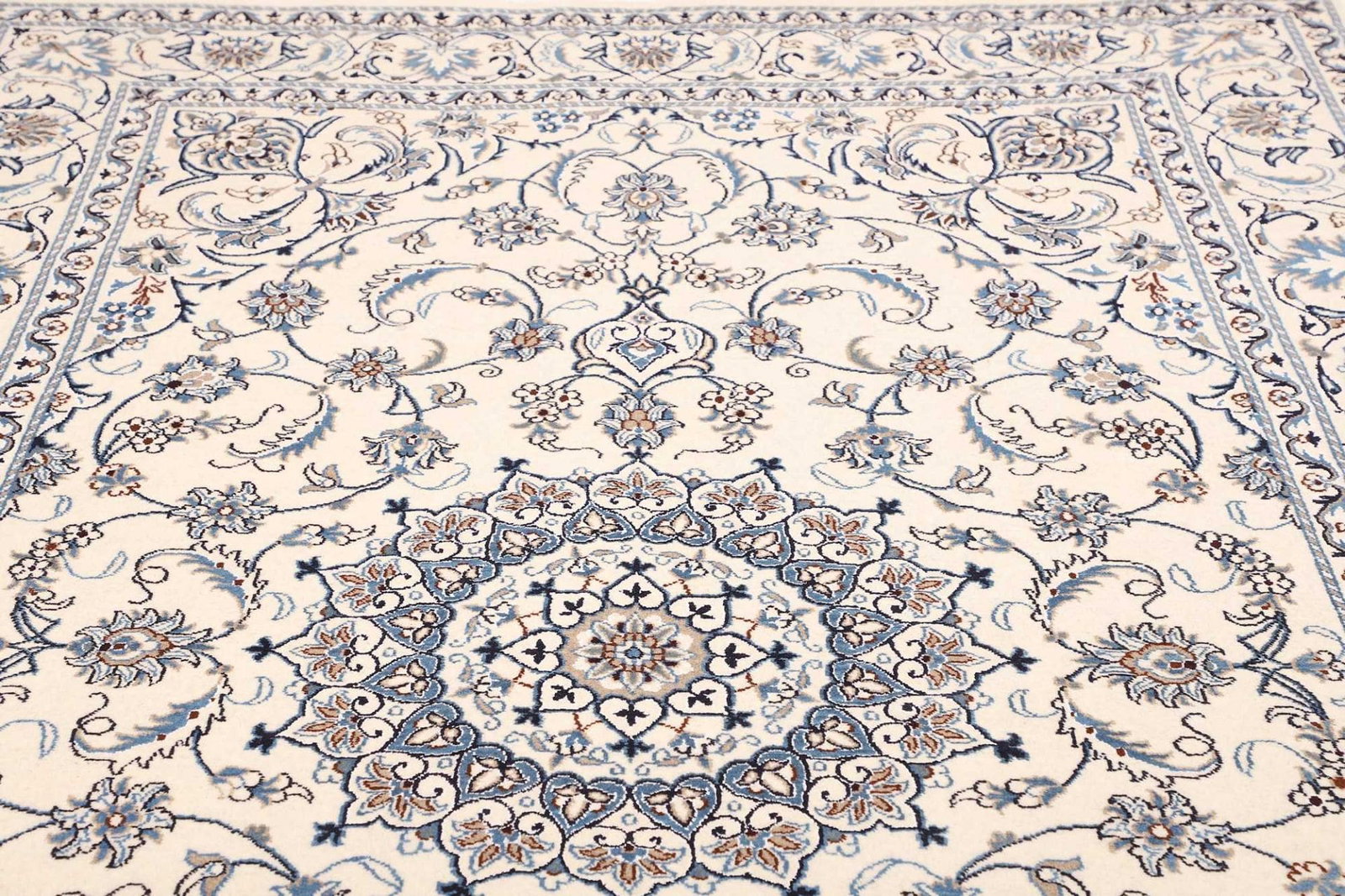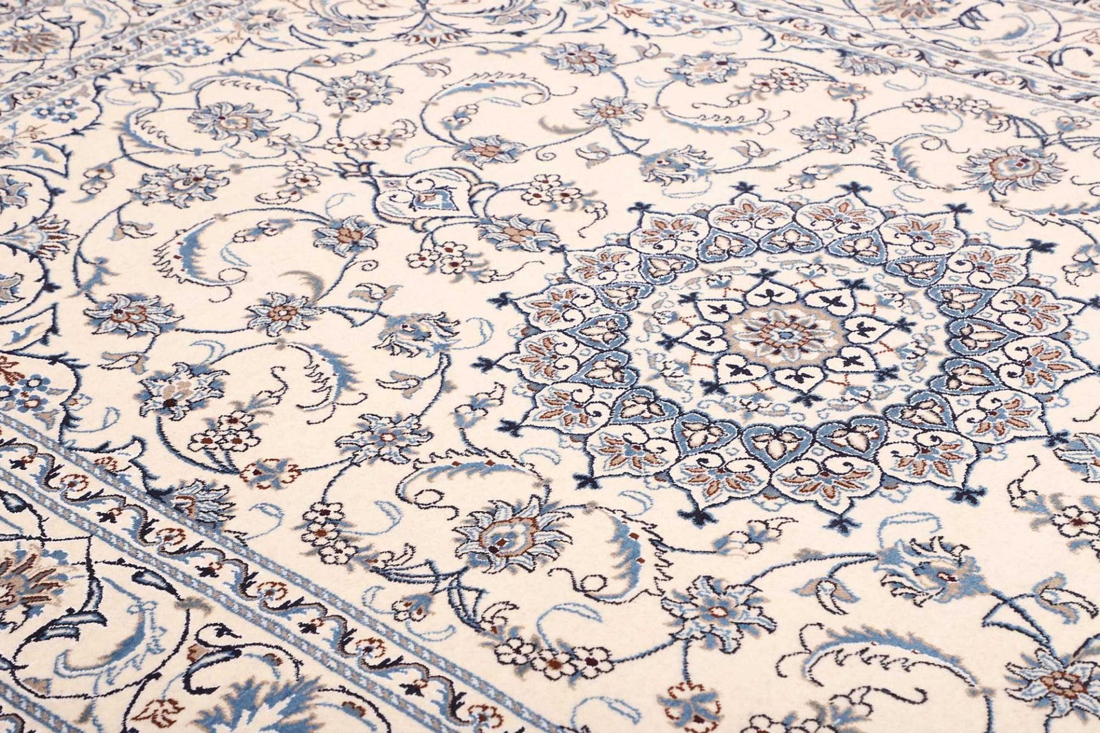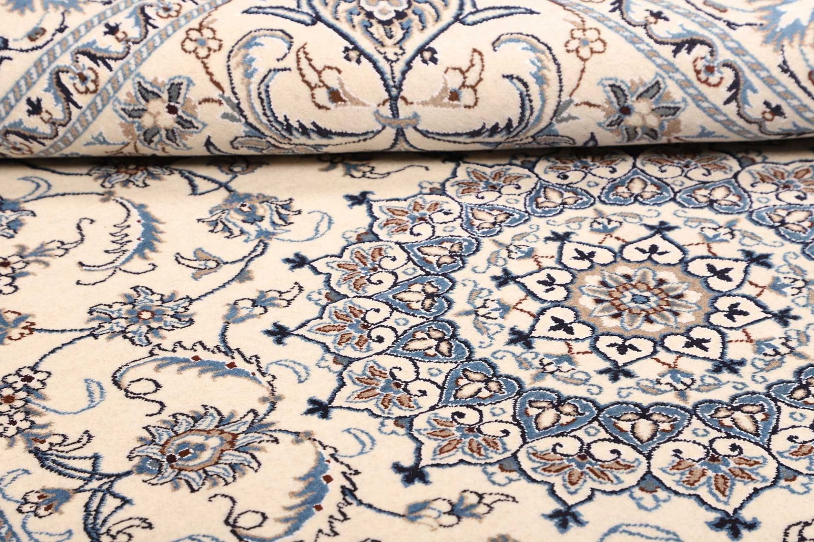 Der Nain Teppich stammt aus der gleichnamigen Stadt Nain, die im Iran liegt und bekannt für ihre reiche Teppichtradition ist. Diese Region hat sich über Jahrhunderte einen Namen in der Teppichherstellung gemacht und ist berühmt für kunstvolle Designs und präzise Fertigungstechniken. Nain-Teppiche zeichnen sich durch ihre feinen Materialien und aufwändigen Muster aus, die oft florale Elemente und geometrische Formen kombinieren. Die Farbpalette ist in der Regel von sanften, harmonischen Tönen geprägt, die jeden Raum stilvoll und einladend wirken lassen.