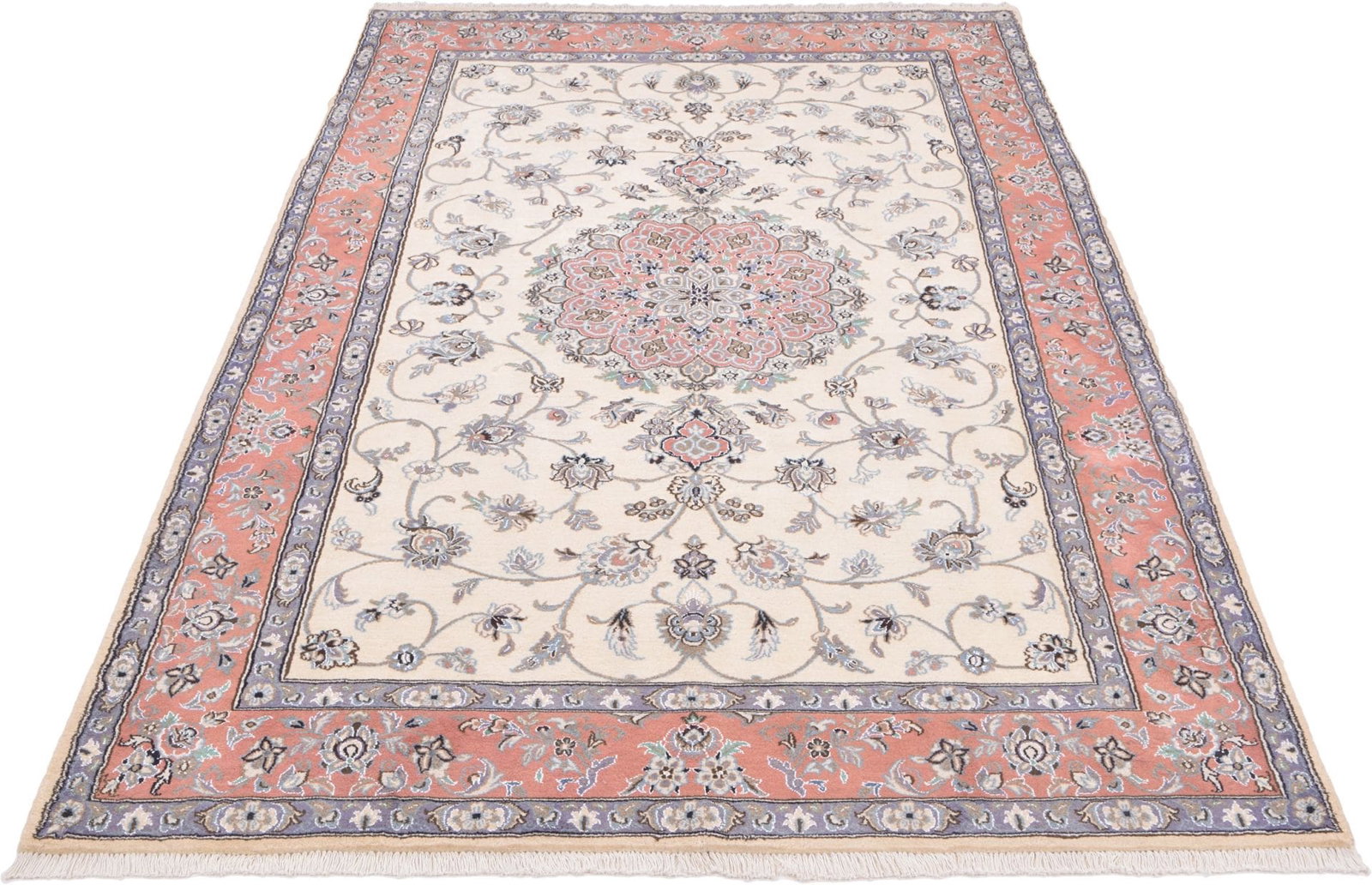 Nain Teppich | Knotendichte: ca. 300.000 Knoten/m² | Flor: 100% Schurwolle | Kette: 100% Baumwolle | Größe: 198×307 cm | Herkunft: Iran | Zustand: Exklusiv und hochwertig | Verarbeitung: Handgeknüpft | Muster: Klassische florale Motive