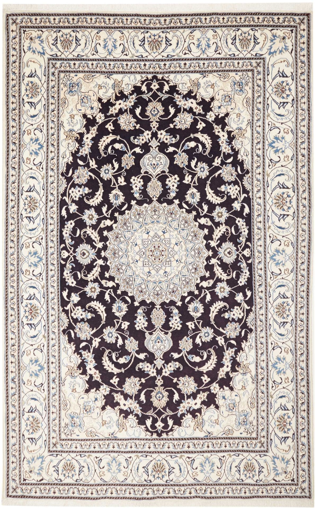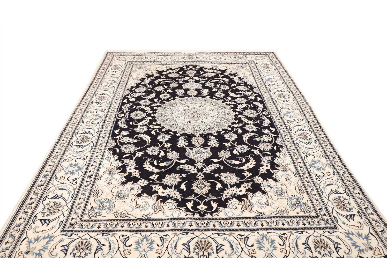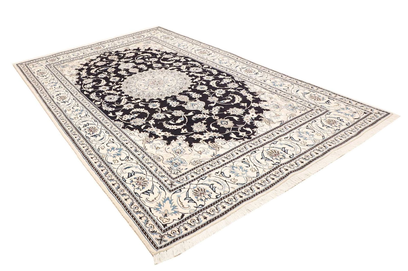 Nain Teppich 198 x 307 cm, florales Muster, handgeknüpft, Perserteppich
