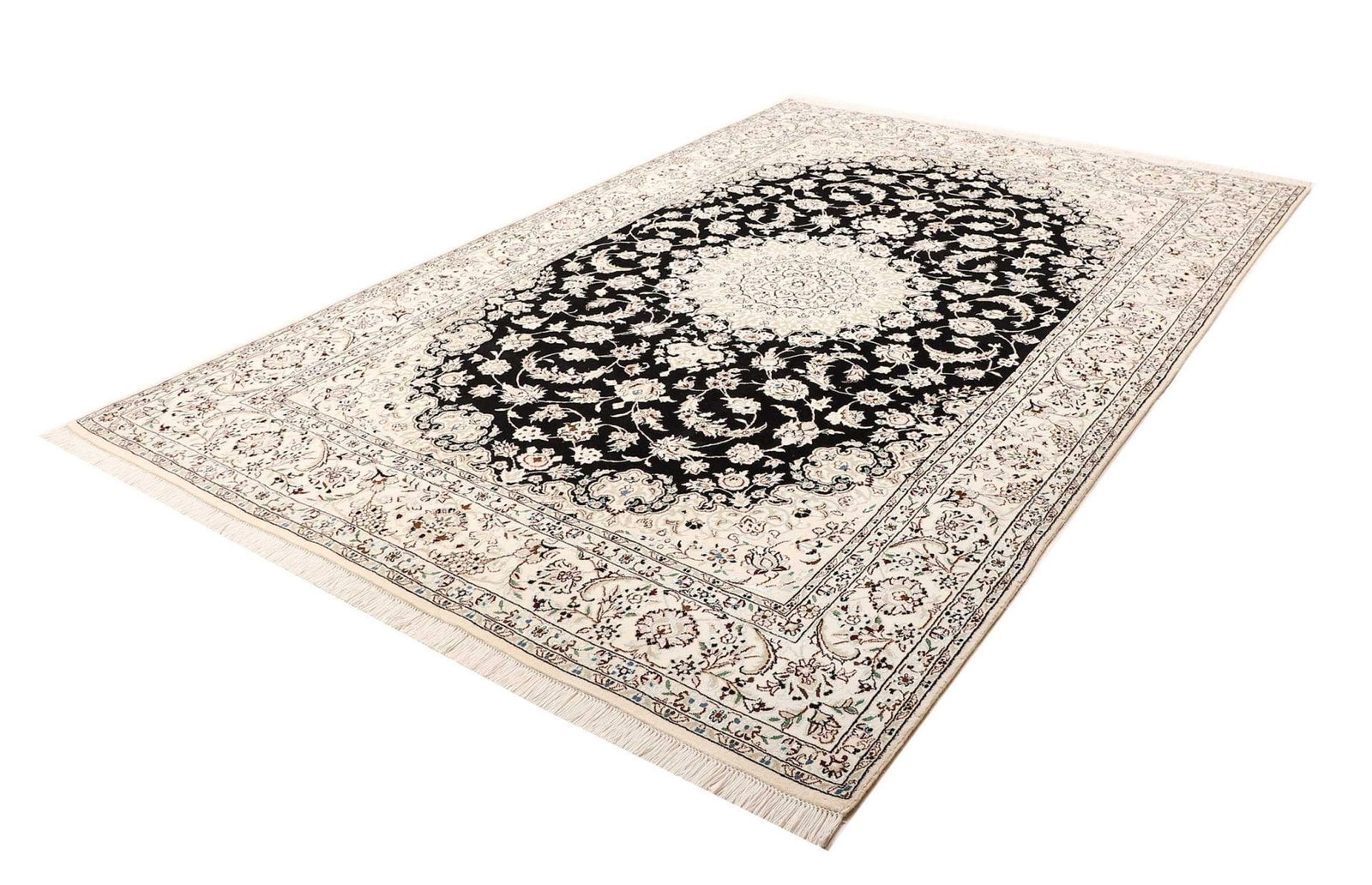 Nain Teppich 201 x 294cm, florales Muster, handgeknüpft, Perserteppich