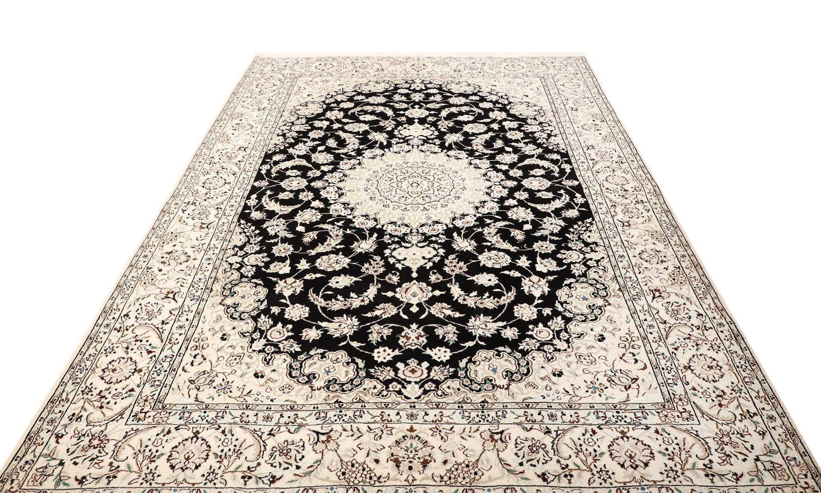 6087$Ursprünglicher Preis war: 6087$5144$Aktueller Preis ist: 5144$Nain Teppich | Knotendichte: 500.000 Knoten/m² | Material: 100% Schurwolle (Flor), 100% Baumwolle (Kette) | Größe: 201×294 cm | Handgeknüpft | Herkunft: Iran | Zustand: Exklusiv und hochwertig