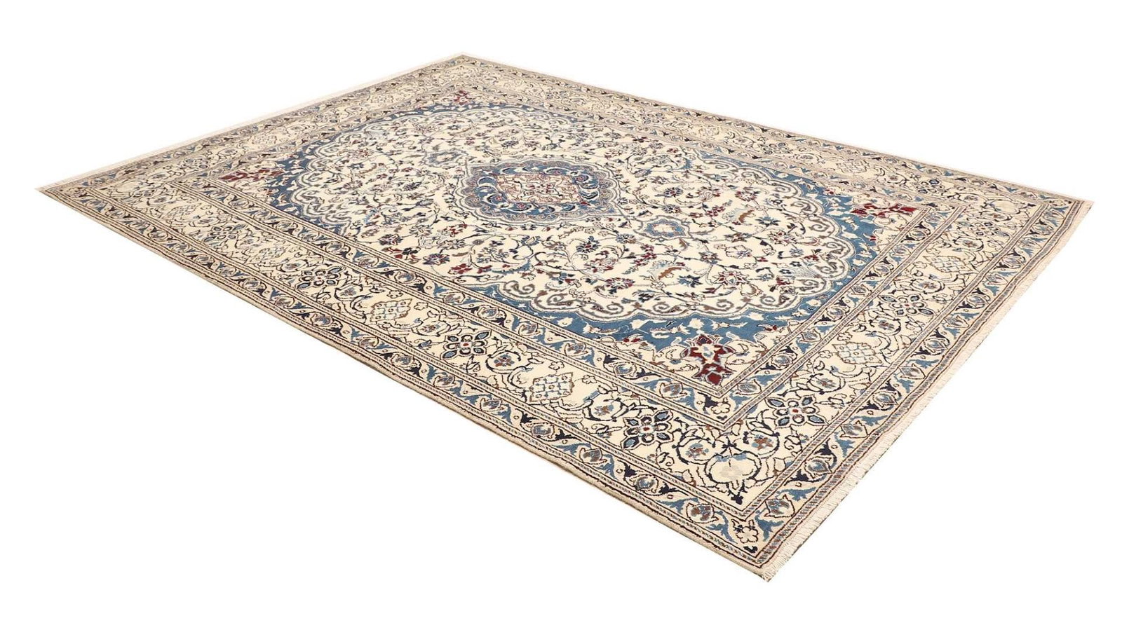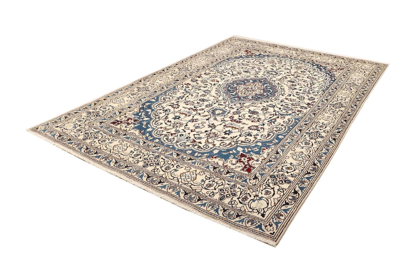 Nain Teppich 203 x 285 cm, florales Muster, handgeknüpft, Perserteppich