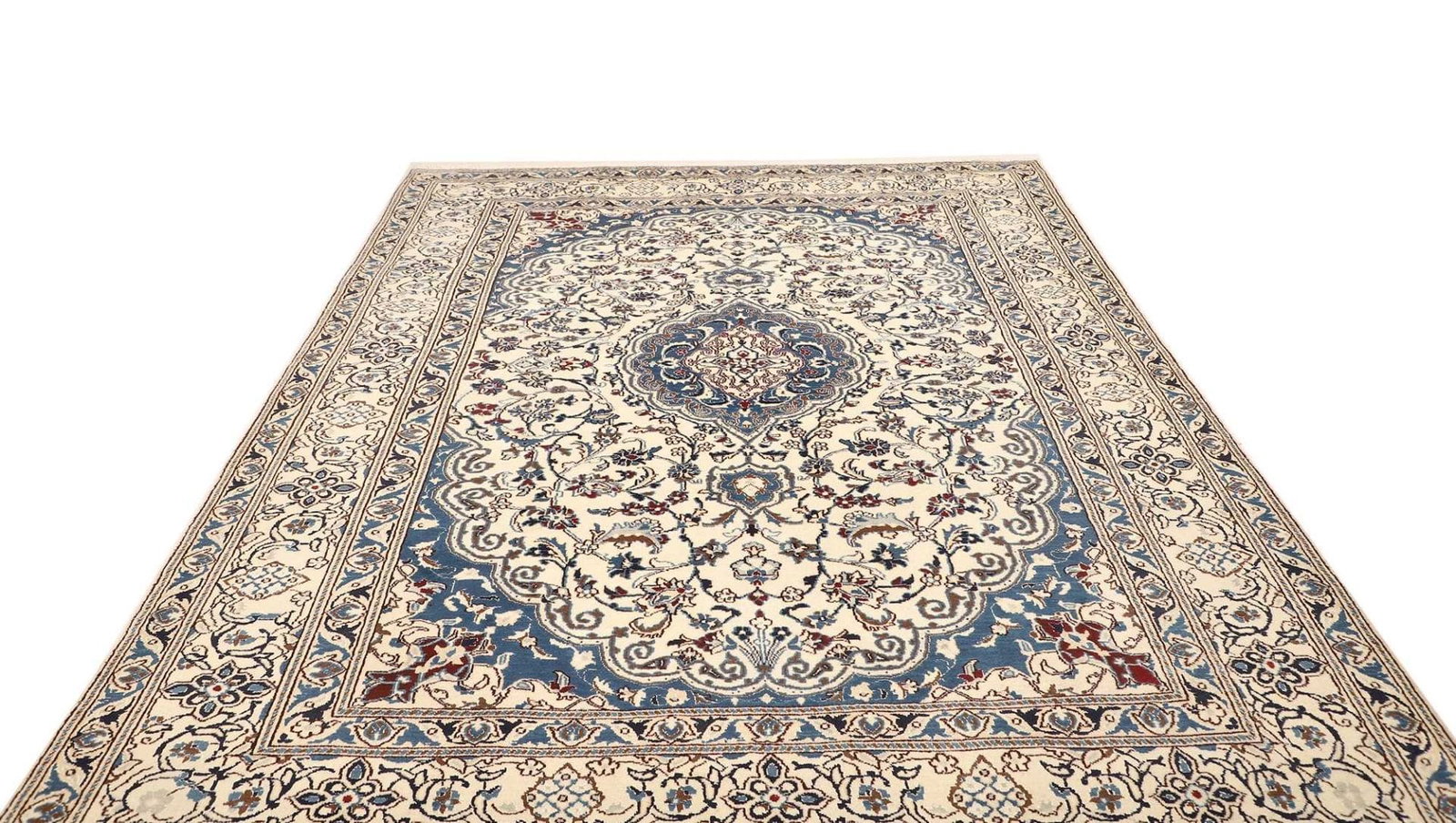 Nain Teppich | Knotendichte: ca. 200.000 Knoten/m² | Flor: 100% Schurwolle | Kette: 100% Baumwolle | Größe: 203 x 285 cm | In ausgezeichnetem Zustand | Herkunft: Iran | Verarbeitung: Handgeknüpft | Exklusive florale und geometrische Muster