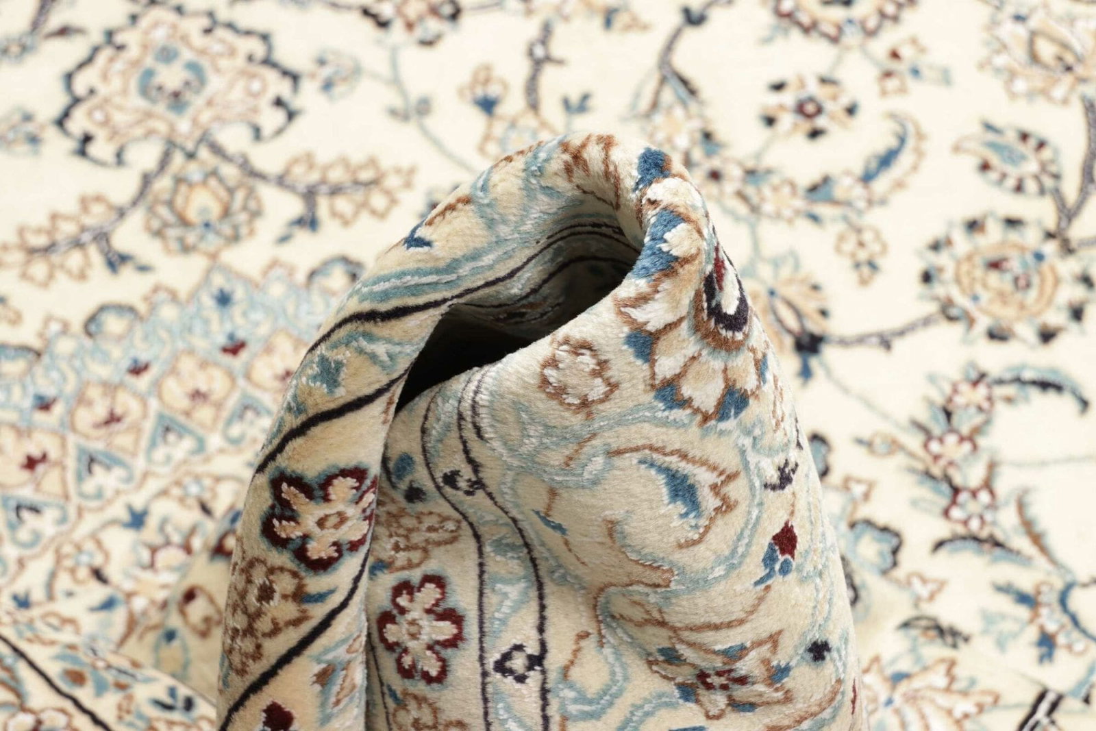 Der Nain Teppich ist ein absolutes Meisterwerk orientalischer Teppichkunst, das in detailreicher Handarbeit gefertigt wurde. Jeder Teppich dieser Art ist ein Unikat, das die Tradition und Handwerkskunst eines der berühmtesten Teppichzentren der Welt verkörpert. Mit einem eleganten floralen Muster, das ein harmonisches Spiel aus Farben und Formen darstellt, wird dieser handgeknüpfte Perserteppich zu einem Blickfang in jedem Raum.