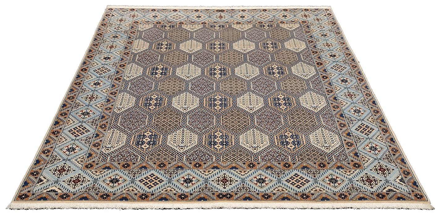 Dieser Nain Teppich ist ein wahres Meisterwerk der Handwerkskunst. Jeder Teppich ist das Ergebnis sorgfältiger Handarbeit, wodurch die kunstvollen floralen Muster und die exquisite Knotendichte ein unverwechselbares Erscheinungsbild schaffen. Die Verwendung hochwertiger Materialien sorgt dafür, dass dieser Teppich nicht nur perfekt für Ihr Zuhause ist, sondern auch über Jahre hinweg seine Schönheit behält.