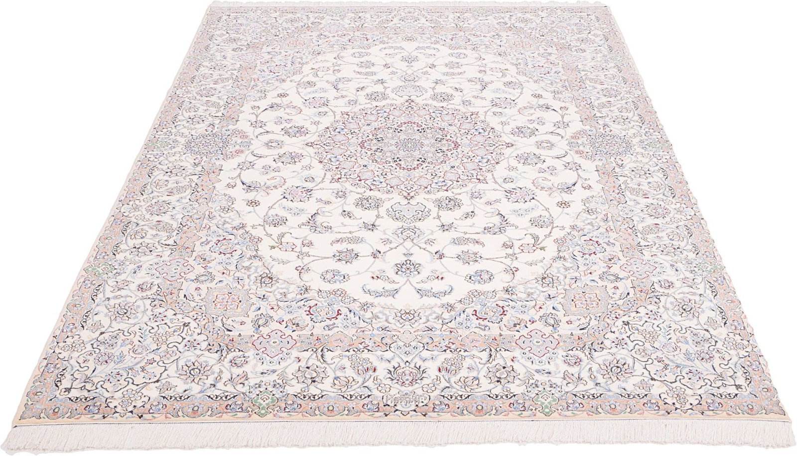 Die Provinz Nain, in der dieser Teppich hergestellt wurde, ist berühmt für ihre Teppichproduktion und gilt als eines der wichtigsten Zentren für Perserteppiche. Die Teppichknüpferei in Nain hat eine langjährige Tradition und zeichnet sich durch spezifische Muster und Techniken aus, die in der Region entwickelt wurden. Nain Teppiche sind bekannt für ihre feinen Linienführungen und zarten Farben, die von natürlichen Farbstoffen stammen. Die Kunst des Knüpfens ist tief in der Kultur der Region verwurzelt, und es ist ein Teil des Erbes, das über Jahrhunderte hinweg geschützt und gepflegt wurde.