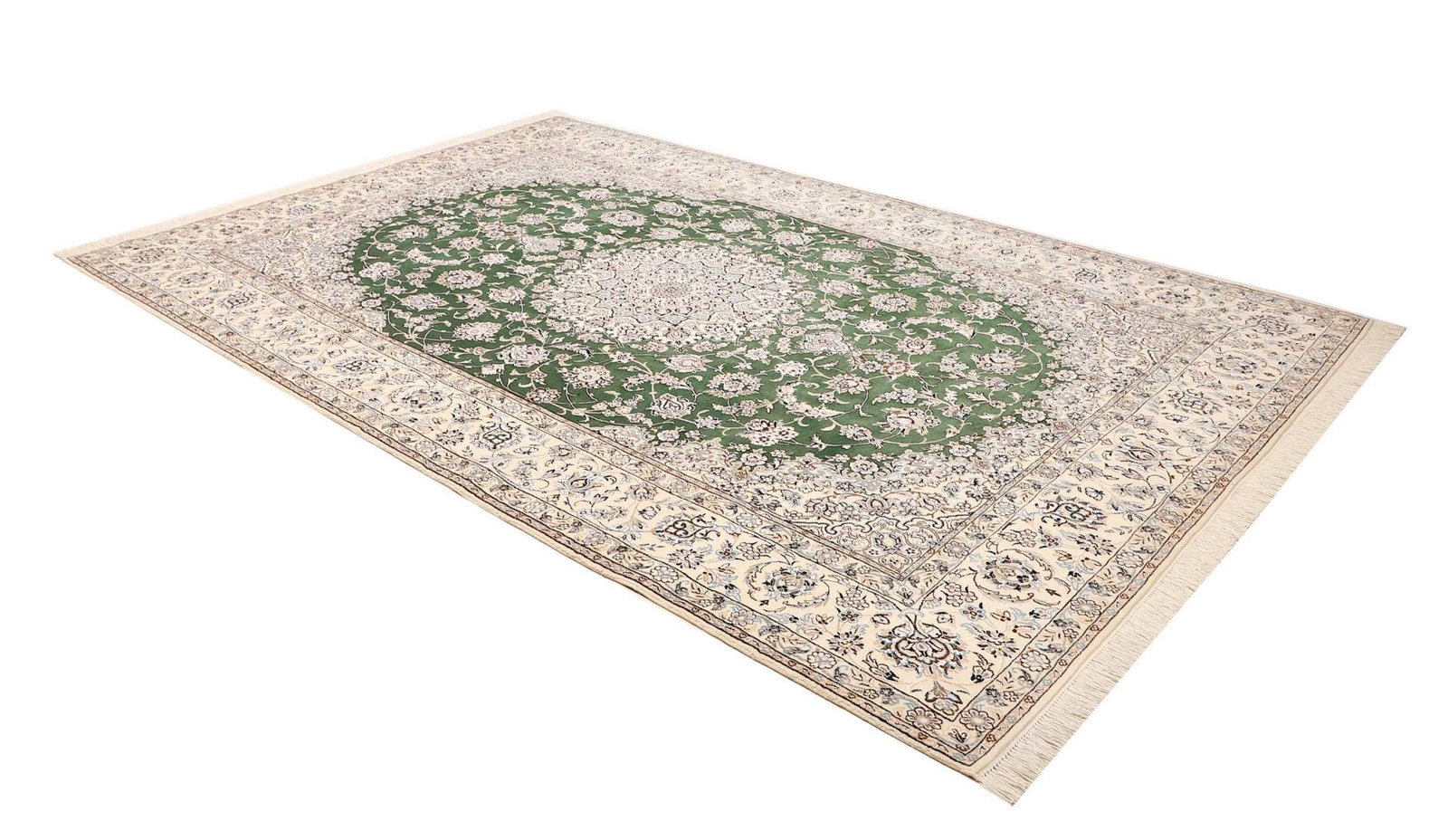 Nain Teppich | Knotendichte: ca. 500.000 Knoten/m² | Material: 100% Schurwolle (Flor) & 100% Baumwolle (Kette) | Größe: 205 x 308 cm | Herkunft: Iran | Zustand: Exklusive handgeknüpfte Qualität | Muster: Klassische florale Motive und moderne Interpretationen