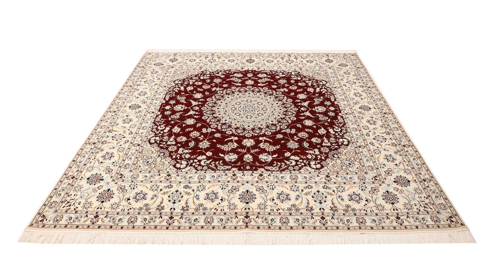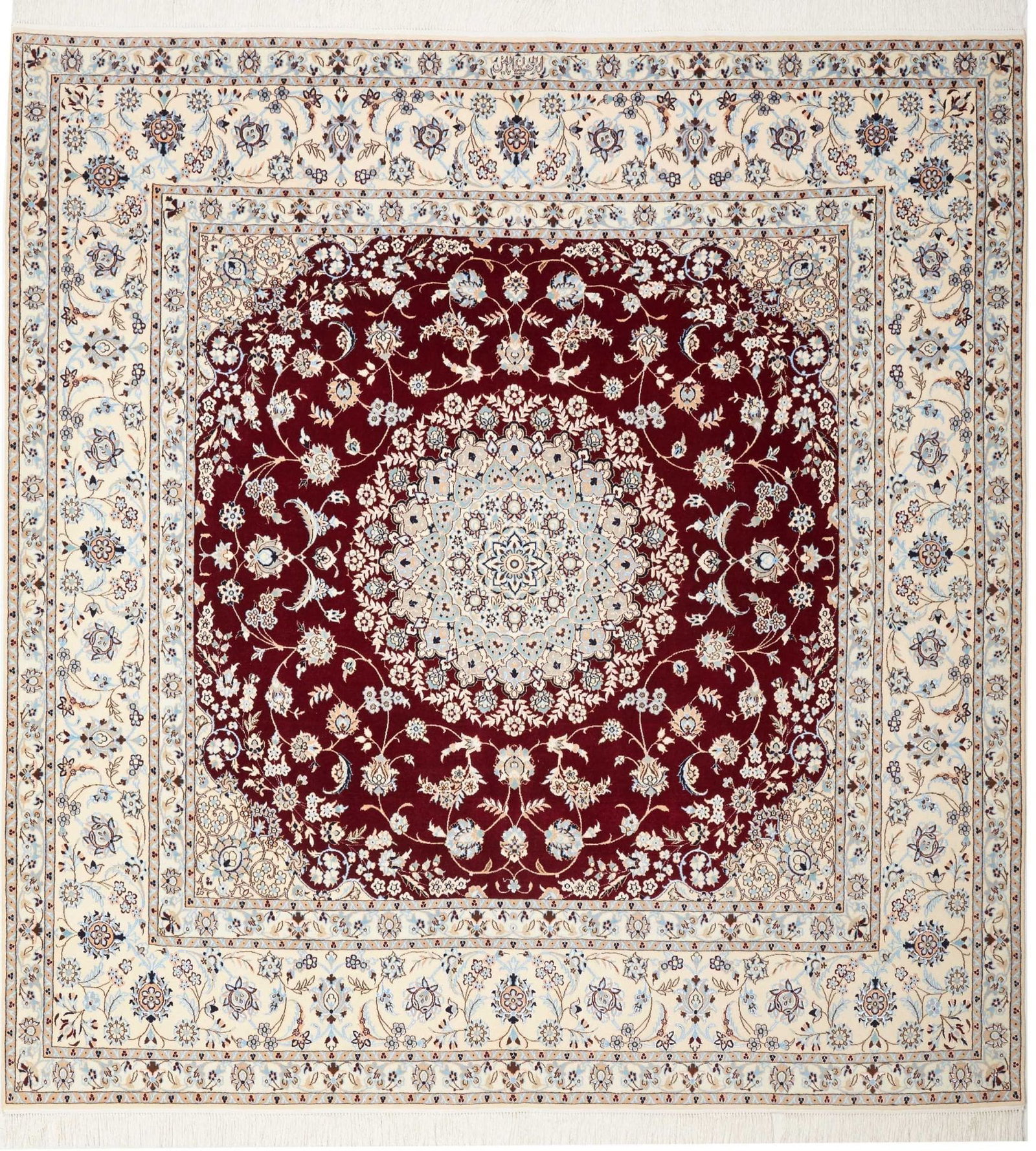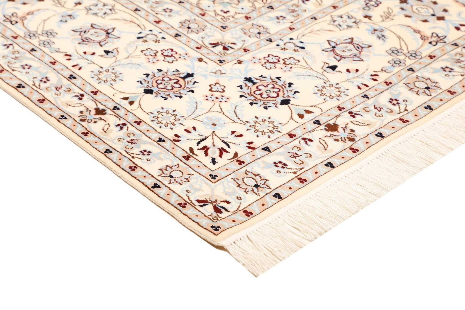 Nain Teppich | Knotendichte: ca. 900.000 Knoten/m² | Material: 100% Schurwolle mit Baumwollkette | Größe: 206 x 212 cm | In ausgezeichnetem Zustand | Herkunft: Iran | Handgeknüpfte Qualität | Exklusive florale Musterung mit königsblauen Akzenten