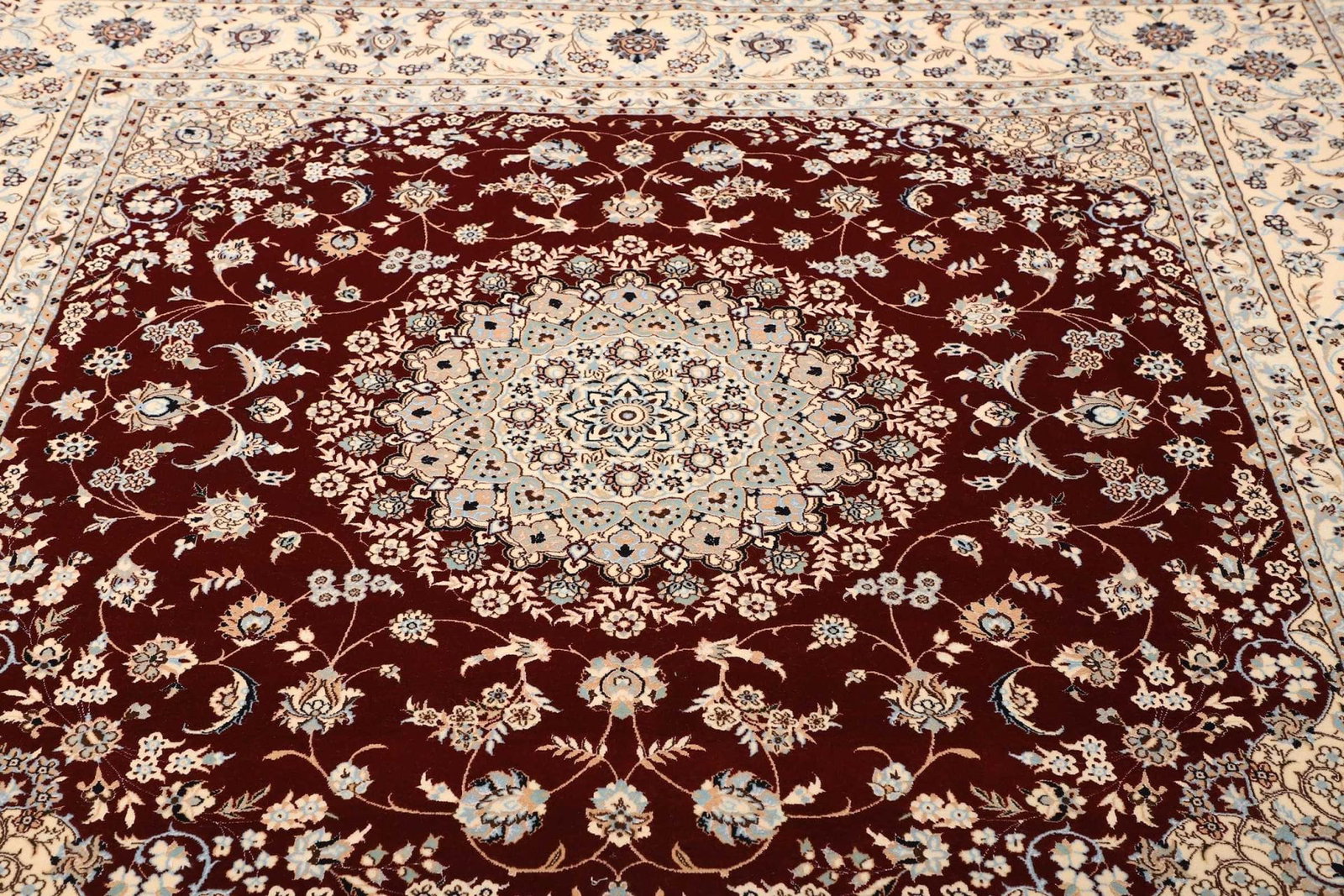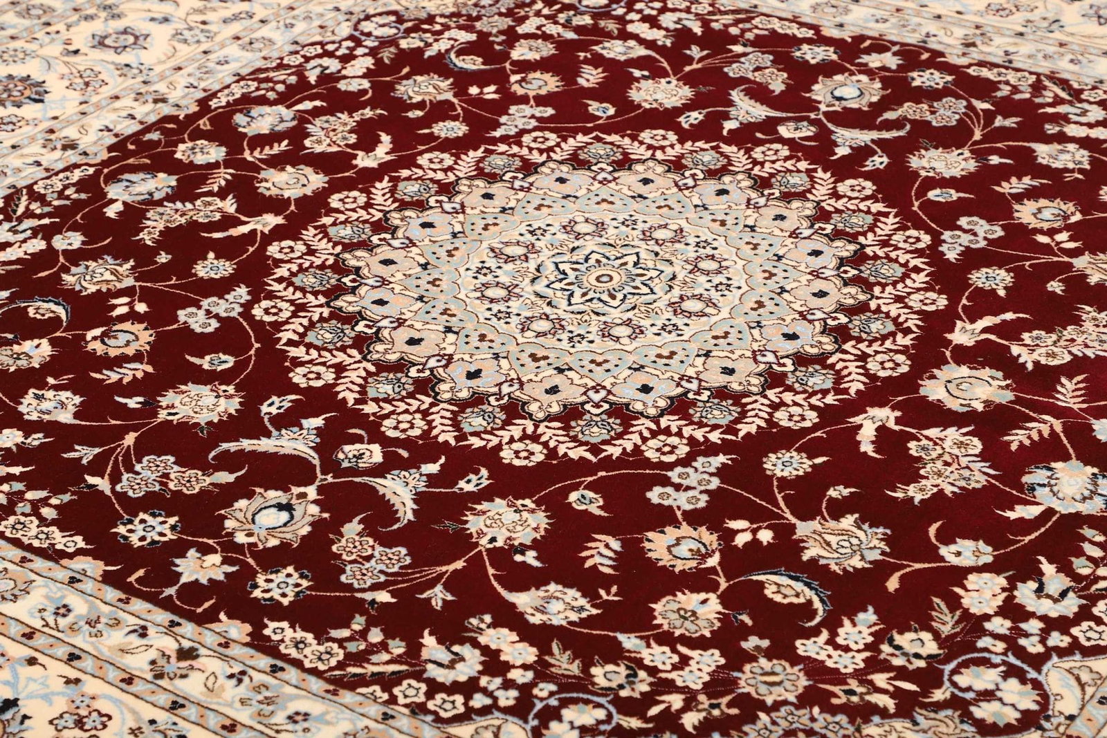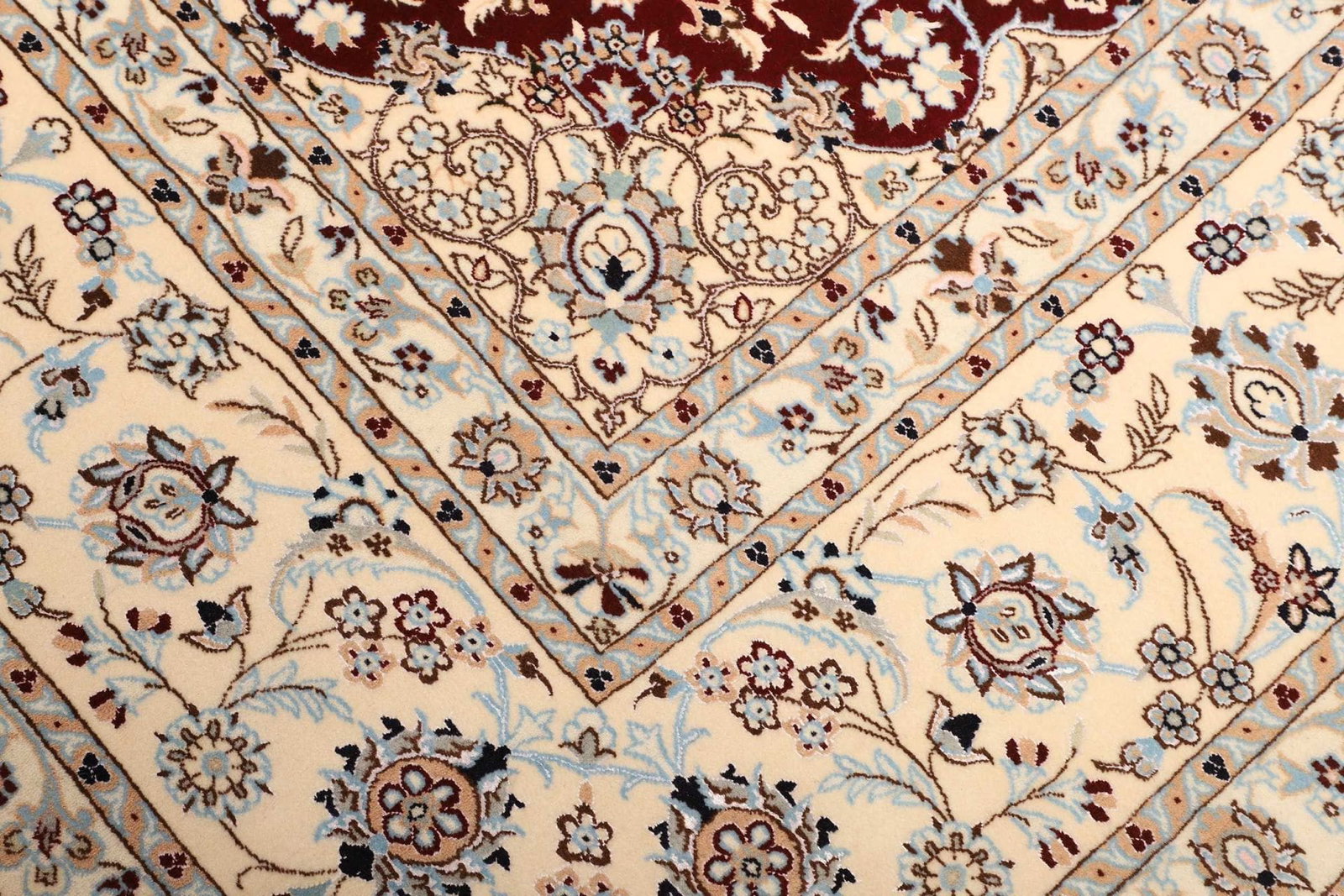 Nain Teppich | Knotendichte: ca. 900.000 Knoten/m² | Material: 100% Schurwolle mit Baumwollkette | Größe: 206 x 212 cm | In ausgezeichnetem Zustand | Herkunft: Iran | Handgeknüpfte Qualität | Exklusive florale Musterung mit königsblauen Akzenten