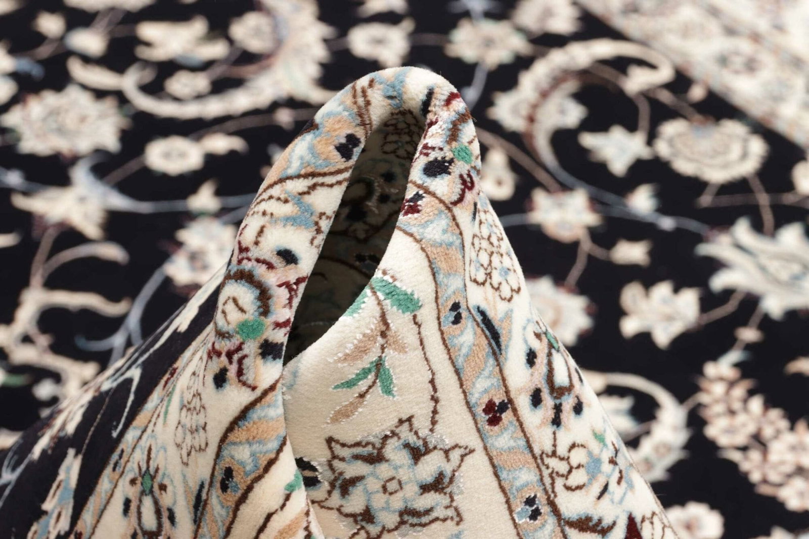 Ein bemerkenswertes Merkmal des Nain Teppichs ist die hohe Knotendichte, die bei 300.000 Knoten pro Quadratmeter liegen kann. Diese hohe Dichte ermöglicht es, auch die kleinsten Details im Design präzise darzustellen. Zudem sind Nain Teppiche heute nicht nur geschätzte Einrichtungsgegenstände, sondern auch wertvolle Sammlerstücke. Da jeder Teppich auf traditionelle Weise handgeknüpft wird, tragen sie zur Erhaltung eines alten Handwerks bei, das in der modernen Welt oft in Vergessenheit gerät.