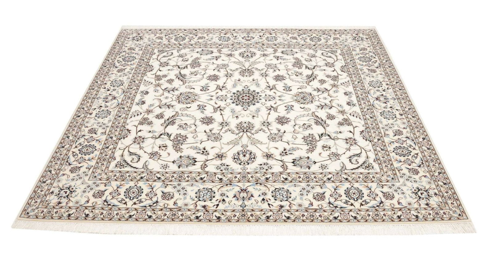 (Verkauft) Nain Teppich 207 x 204 cm – Handgeknüpft, florales Muster, Perserteppich