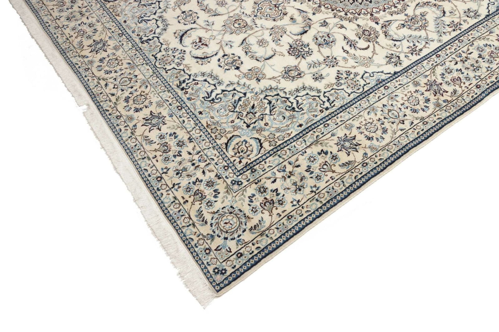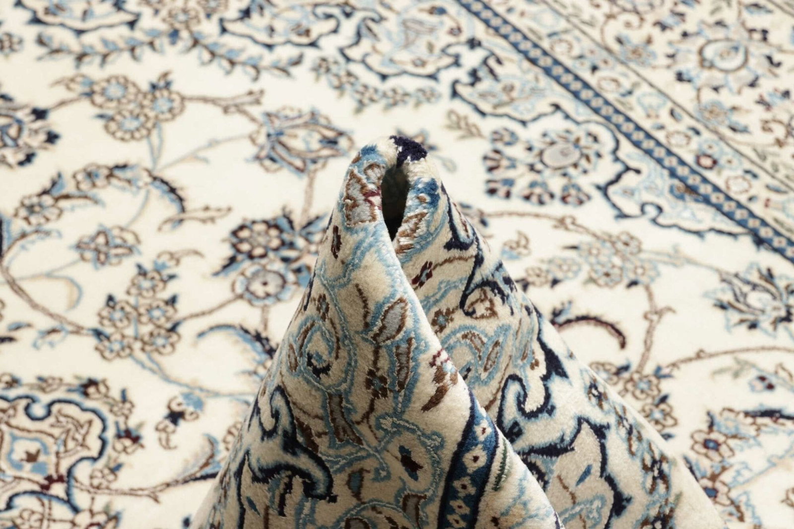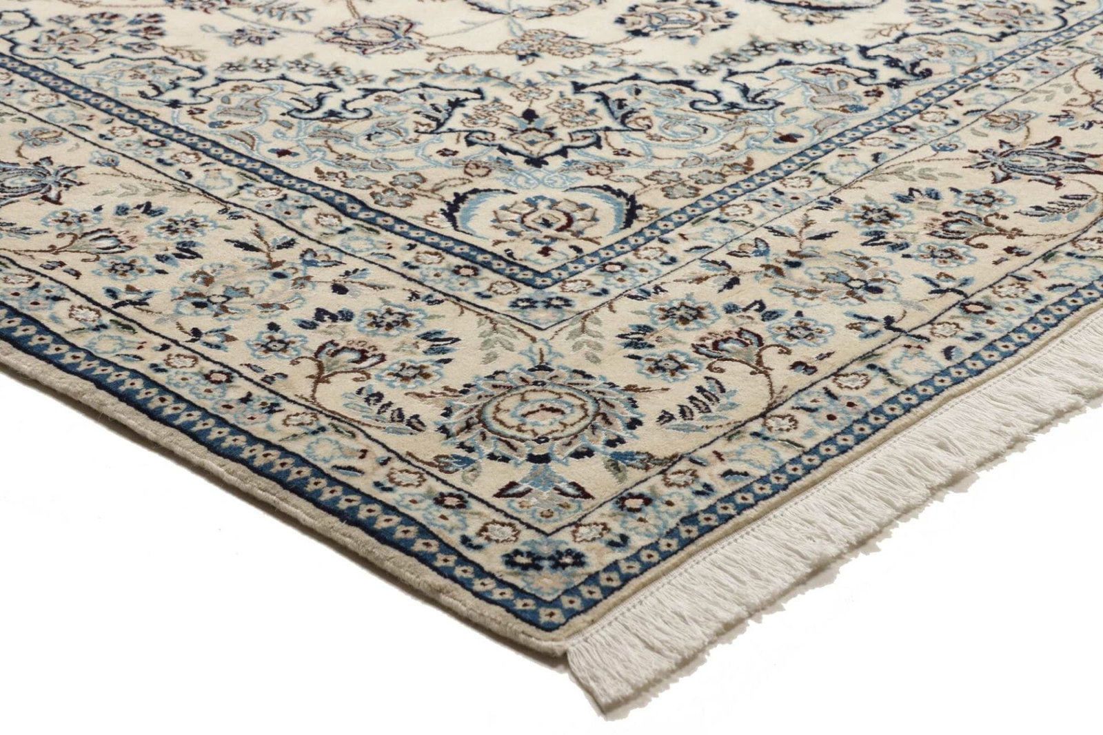 6227$Ursprünglicher Preis war: 6227$5559$Aktueller Preis ist: 5559$Nain Teppich | Knotendichte: ca. 500.000 Knoten/m² | Material: 100% Schurwolle (Flor), 100% Baumwolle (Kette) | Größe: 207 x 304 cm | Handgeknüpft | Ursprung: Iran | Muster: Klassische florale Motive in hellem Grundton und königsblau
