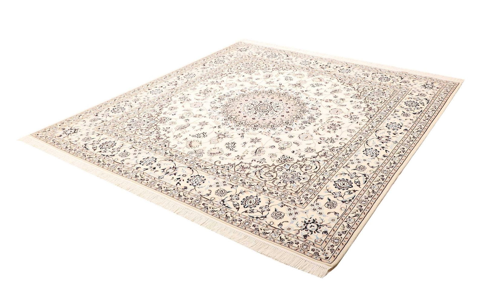 8049$Ursprünglicher Preis war: 8049$7214$Aktueller Preis ist: 7214$Nain Teppich | Knotendichte: ca. 900.000 Knoten/m² | Material: 100% Schurwolle (Flor) und 100% Baumwolle (Kette) | Größe: 208 x 213 cm | Zustand: Sehr gut | Herkunft: Iran | Verarbeitung: Handgeknüpft | Muster: Klassische florale Motive
