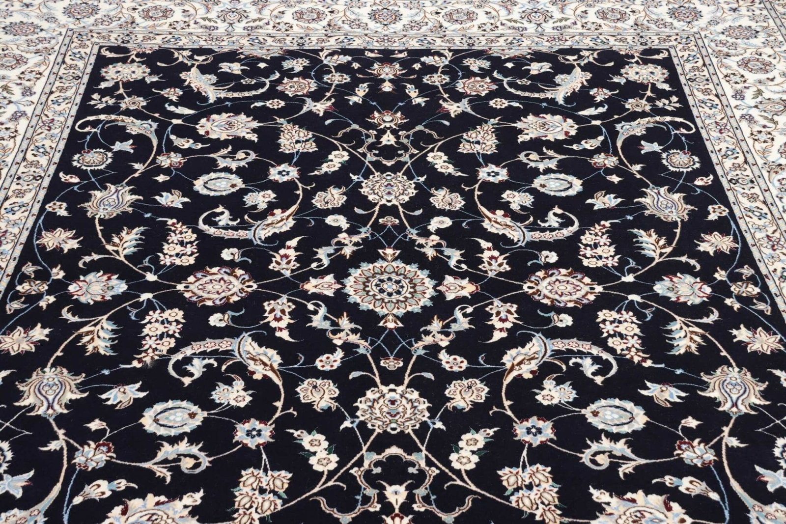 9821$Ursprünglicher Preis war: 9821$7841$Aktueller Preis ist: 7841$Nain Teppich | Knotendichte: ca. 900.000 Knoten/m² | Muster: Klassische florale Motive | Größe: 211 x 253 cm | Material: 100% Schurwolle (Flor), 100% Baumwolle (Kette) | Herkunft: Iran | Zustand: Handgeknüpft, ausgezeichnete Qualität