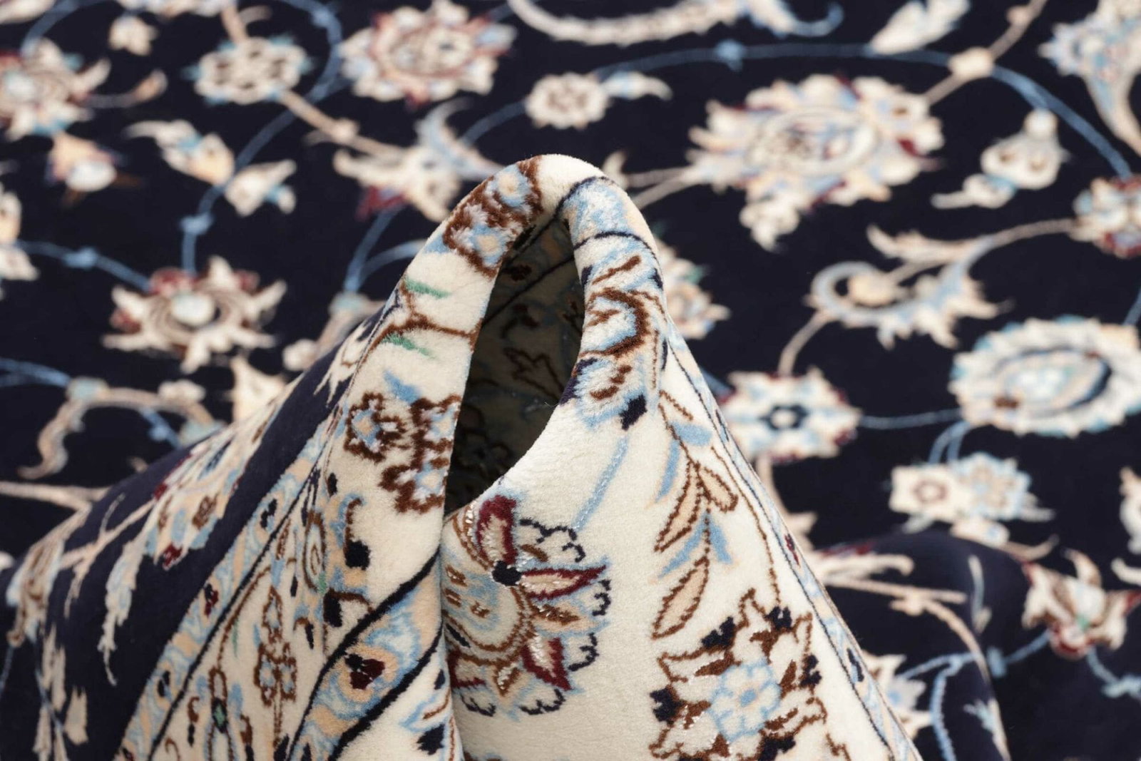 Die floralen Muster des Nain Teppichs sind ein charakteristisches Merkmal, das den ästhetischen Reiz zusätzlich verstärkt. Sie spiegeln die Natur wider und schaffen eine entspannende Atmosphäre in jedem Raum. Die sanften Farben und die ausgeklügelte Anordnung der Muster zeichnen sich durch harmonische Kombinationen aus Blau-, Beige- und Erdtönen aus. Diese Farben und Designs sind nicht nur stilvoll, sondern auch zeitlos, wodurch der Teppich zu einem idealen Begleiter in verschiedenen Inneneinrichtungsstilen wird.