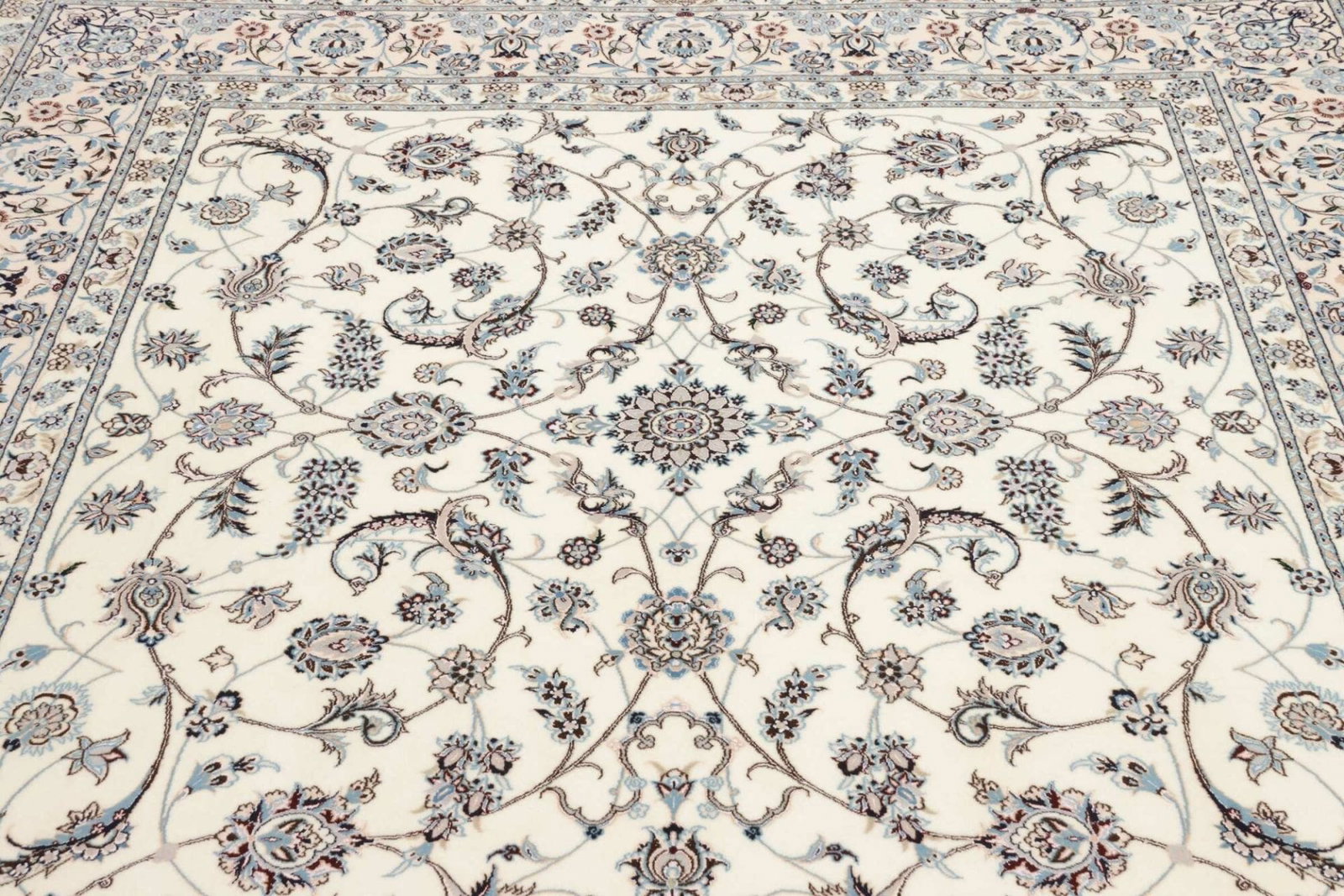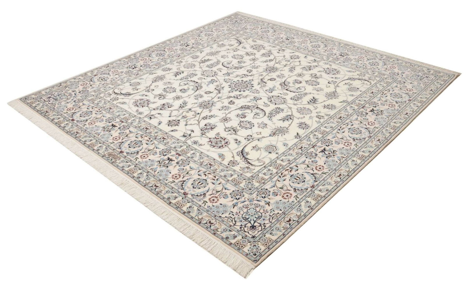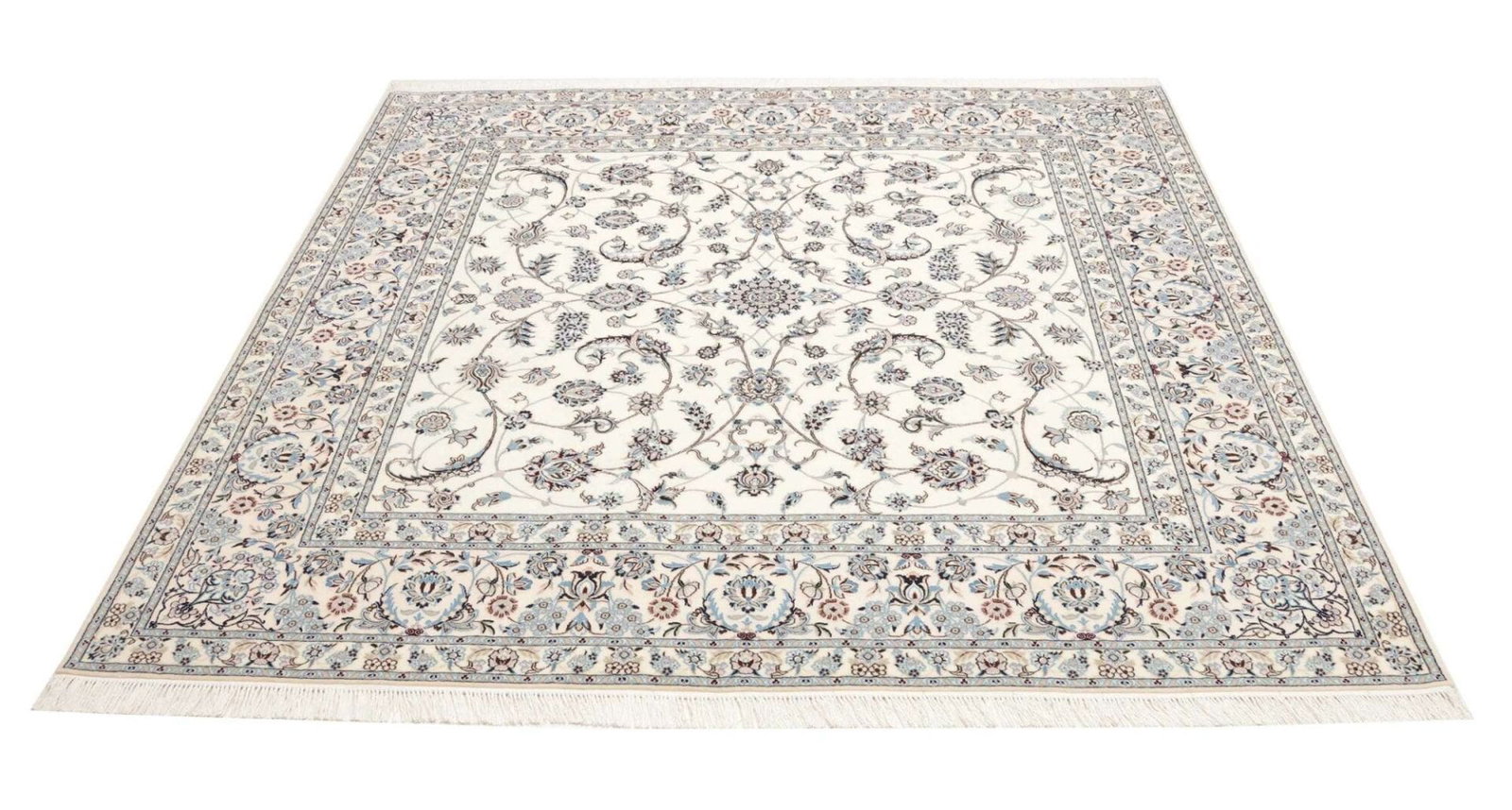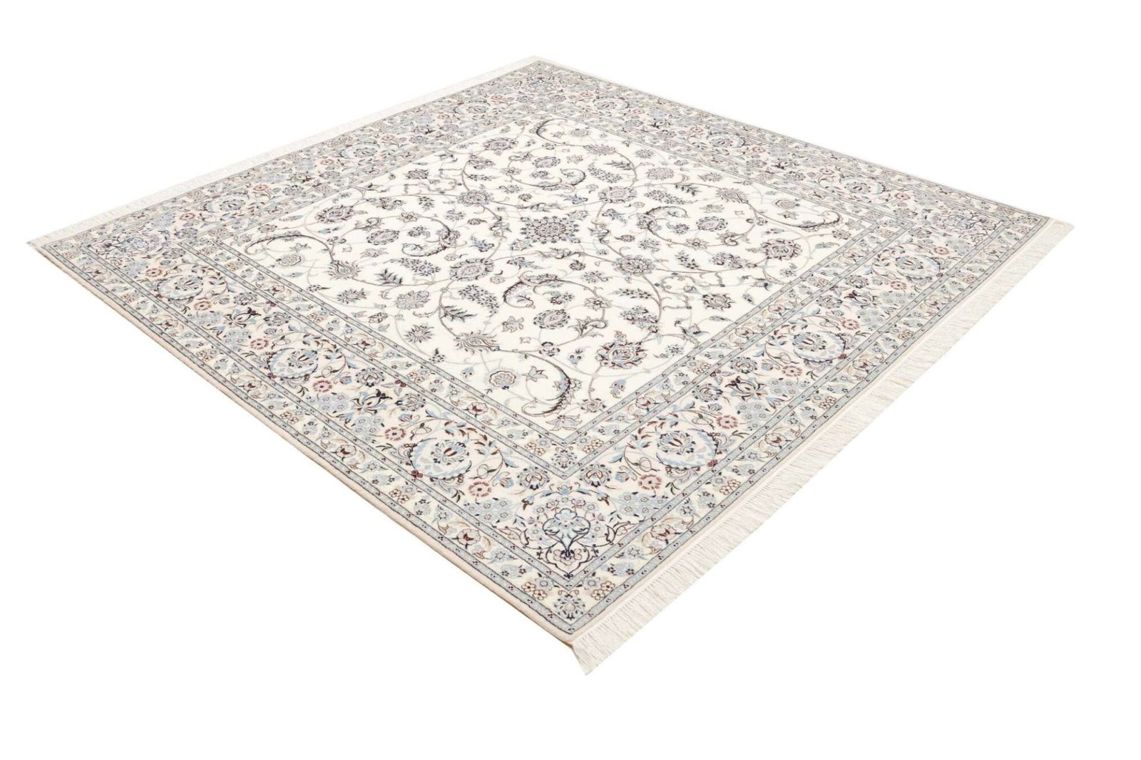Nain Teppich 210 x 210 cm, florales Muster, Schurwolle, handgeknüpft