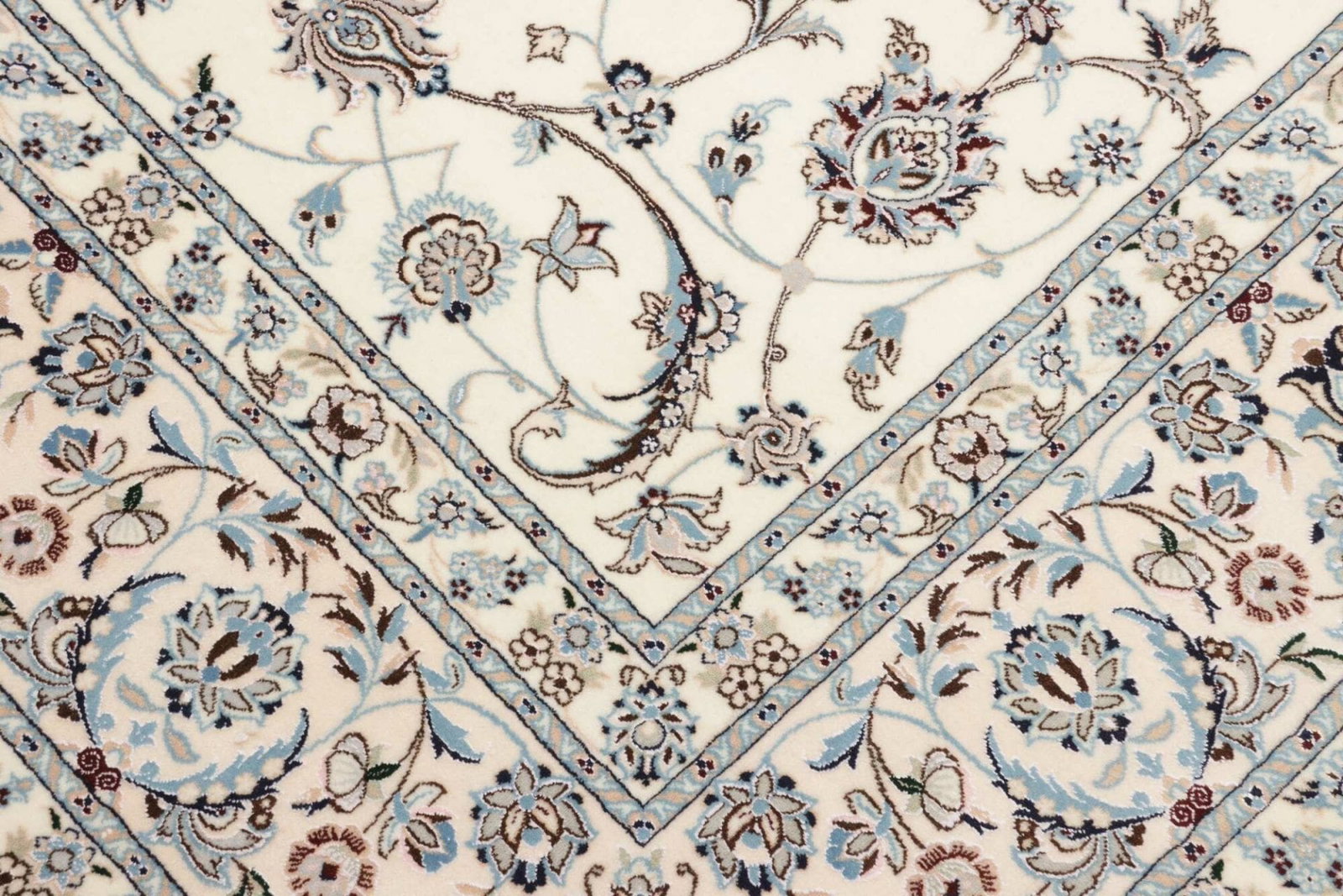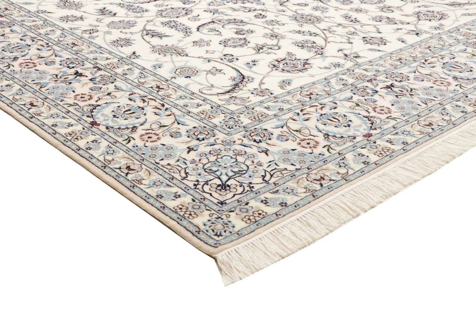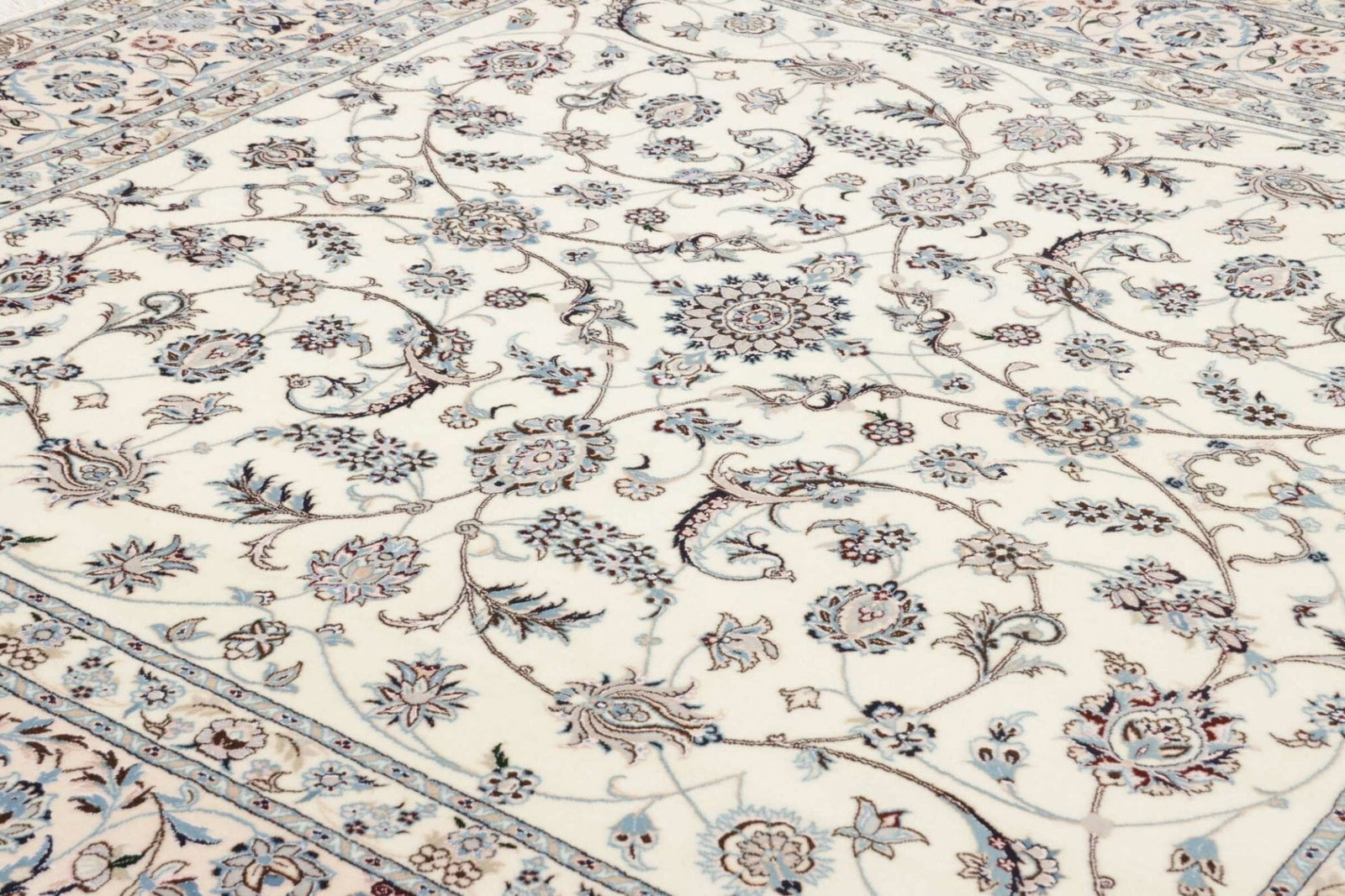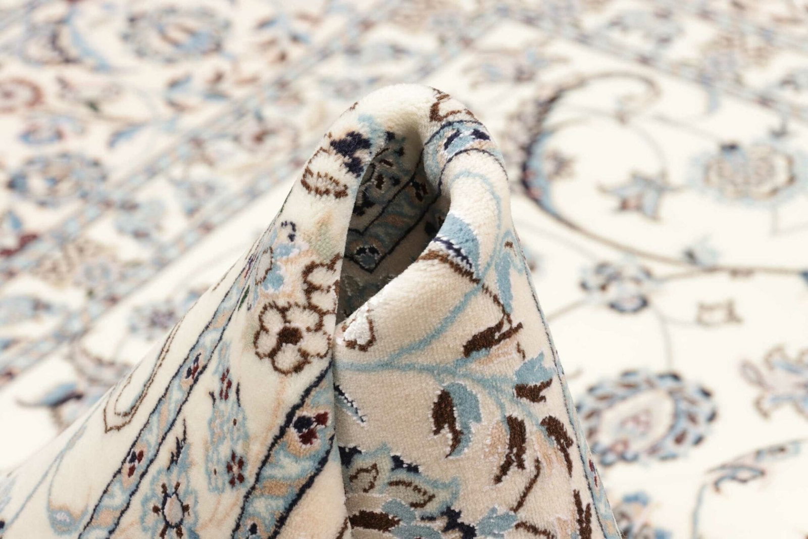 Das Besondere an Nain Teppichen ist die Kombination von floralen und geometrischen Motiven, die eine harmonische und anmutige Ausstrahlung erzeugen. Diese Teppiche werden oft mit feinsten Woll- und Seidenfäden geknüpft, sodass sie nicht nur als Fußbodenbelag, sondern auch als Kunstwerke gelten.
