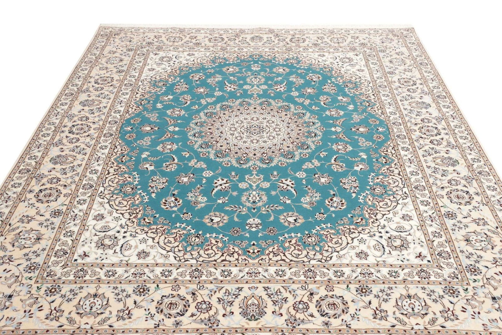 5112$Ursprünglicher Preis war: 5112$1704$Aktueller Preis ist: 1704$ Weiterlesen(Verkauft) W1 (#167) ca. 305x195cm Neuwertig Handgeknüpfter Nain Perserteppich mit Seide 12la