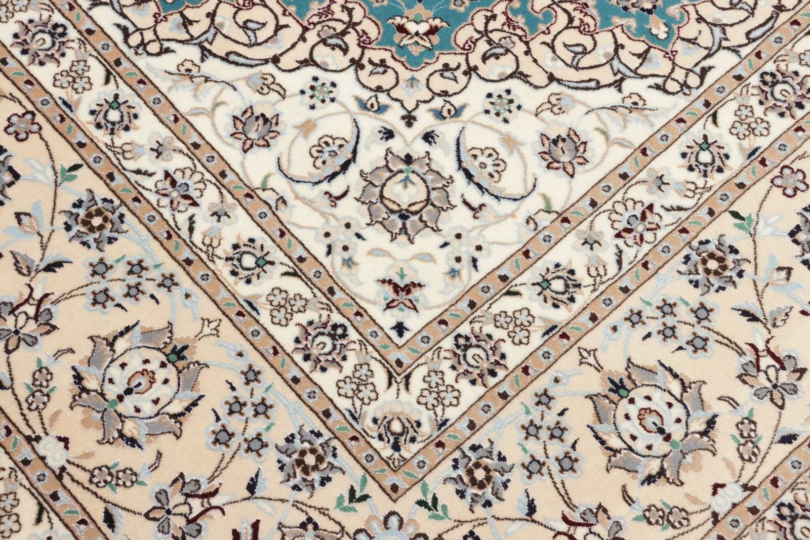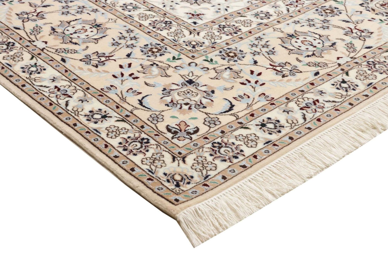 Nain Teppich 210 x 260 cm, florale Muster, Schurwolle, handgeknüpft