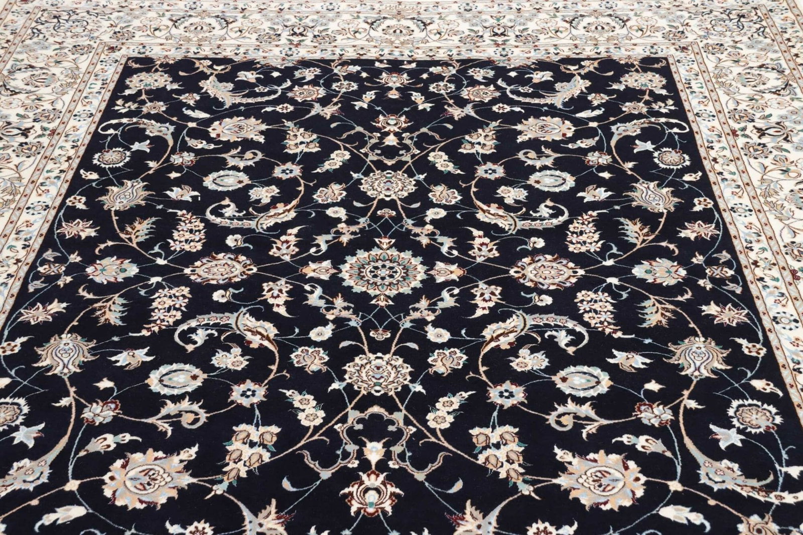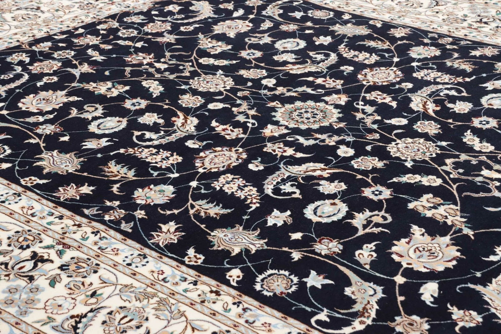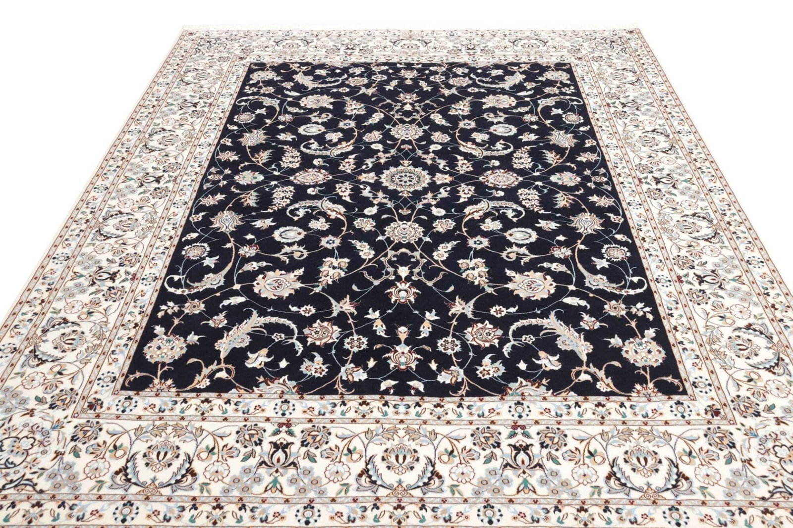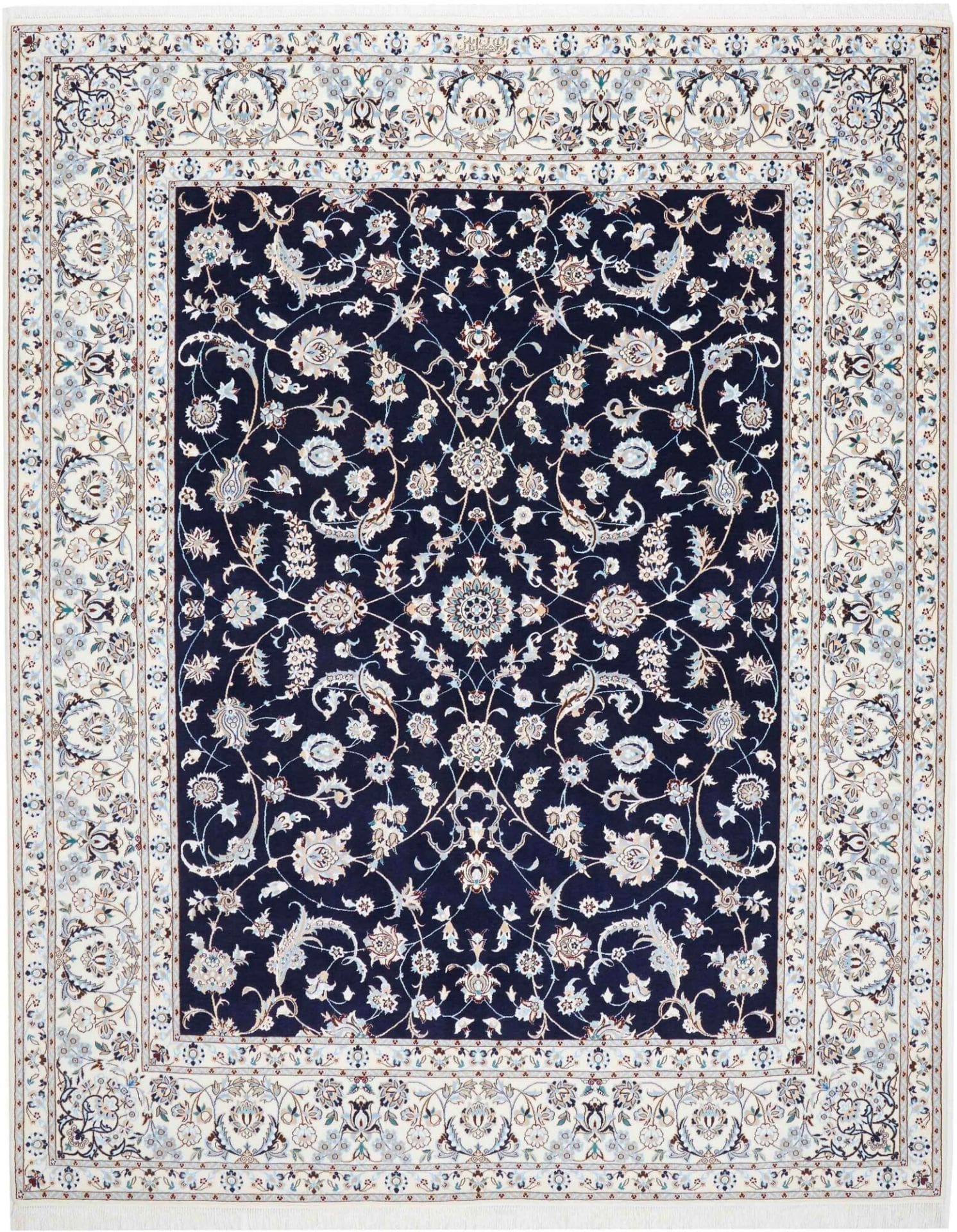 Nain Teppich | Knotendichte: ca. 900.000 Knoten/m² | Material: 100% Schurwolle, Kette: 100% Baumwolle | Größe: 212 x 261 cm | Herkunft: Iran | Zustand: Handgeknüpft, exklusive Qualität | Muster: Klassische florale Motive