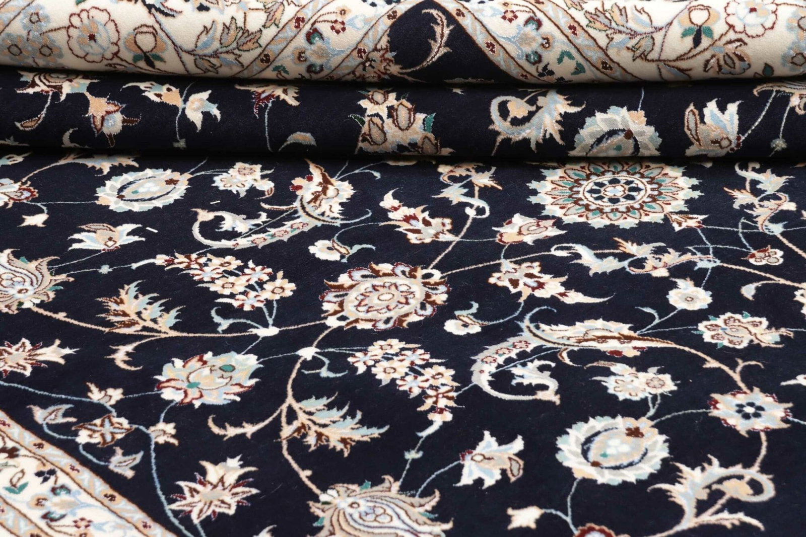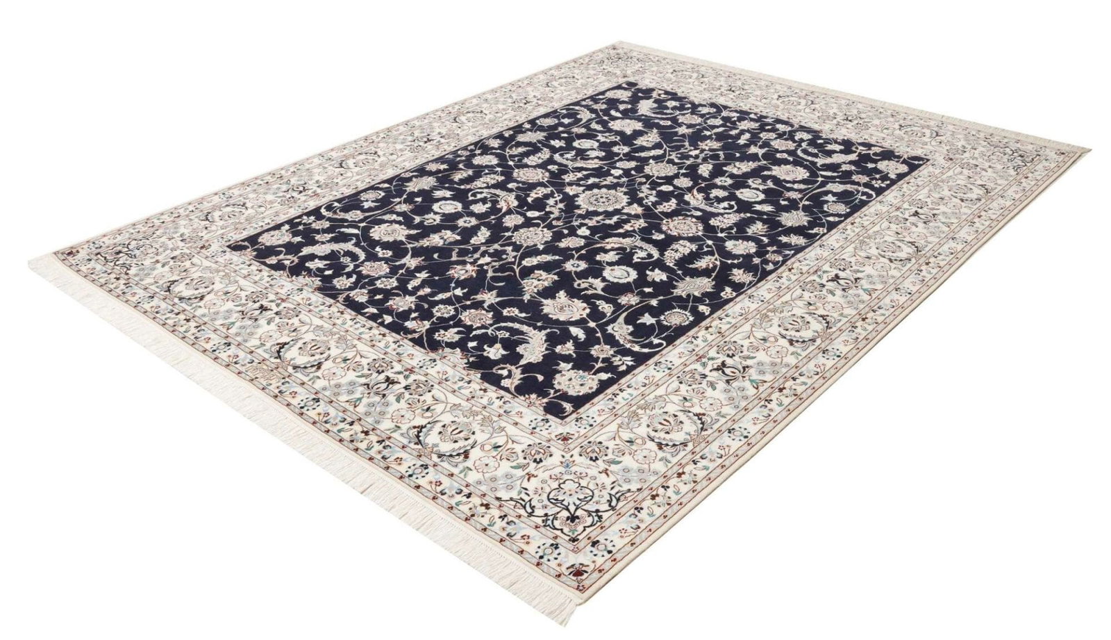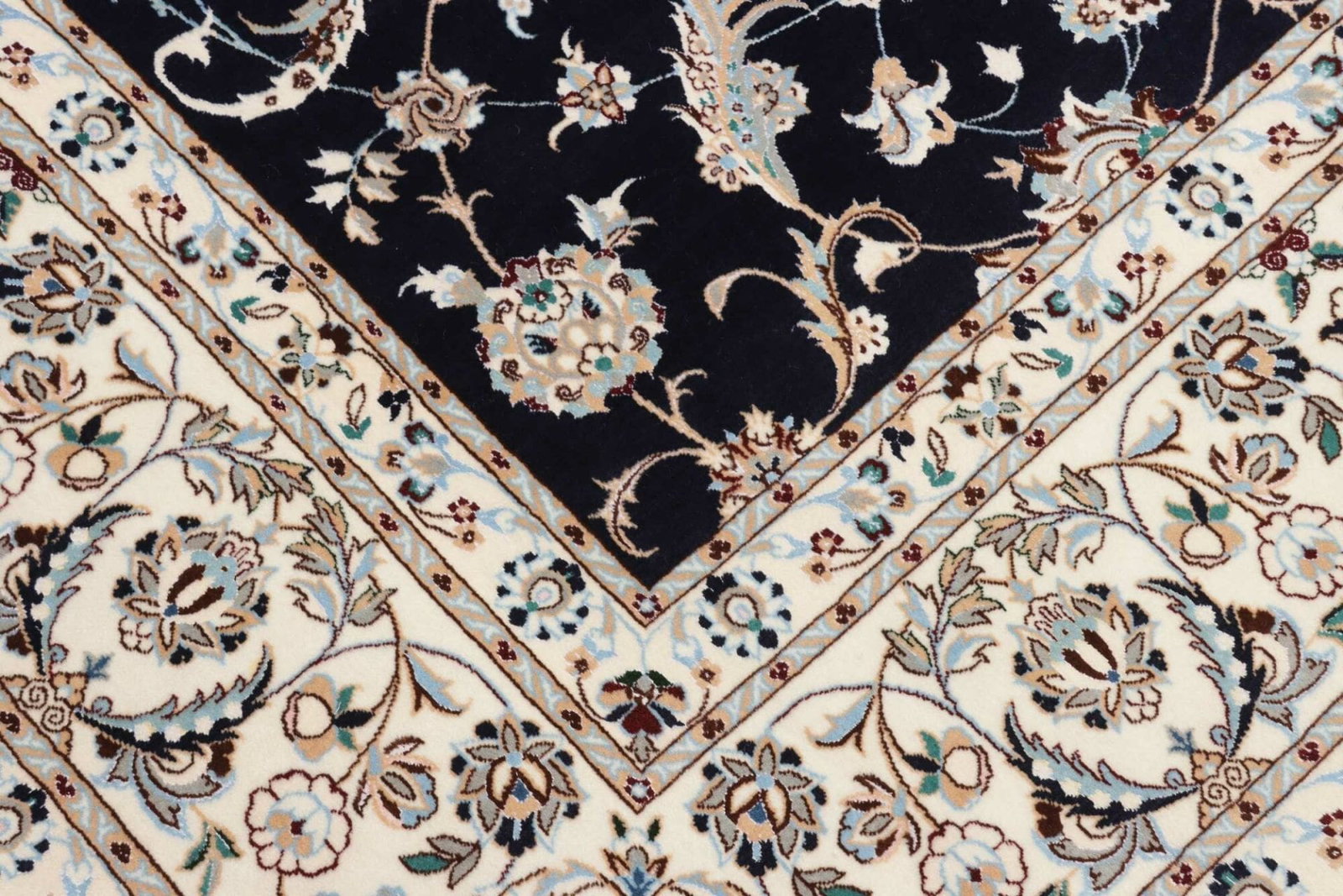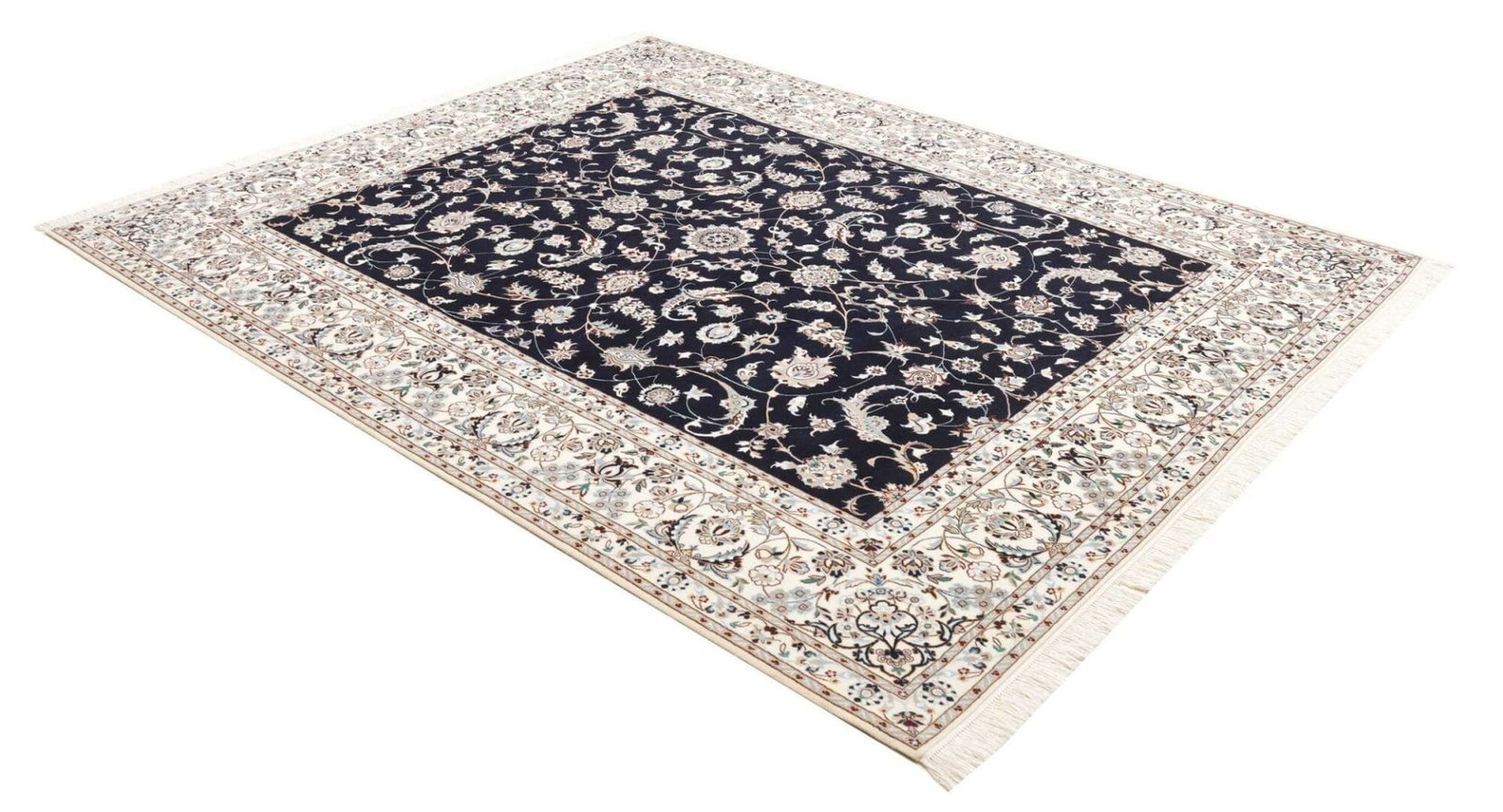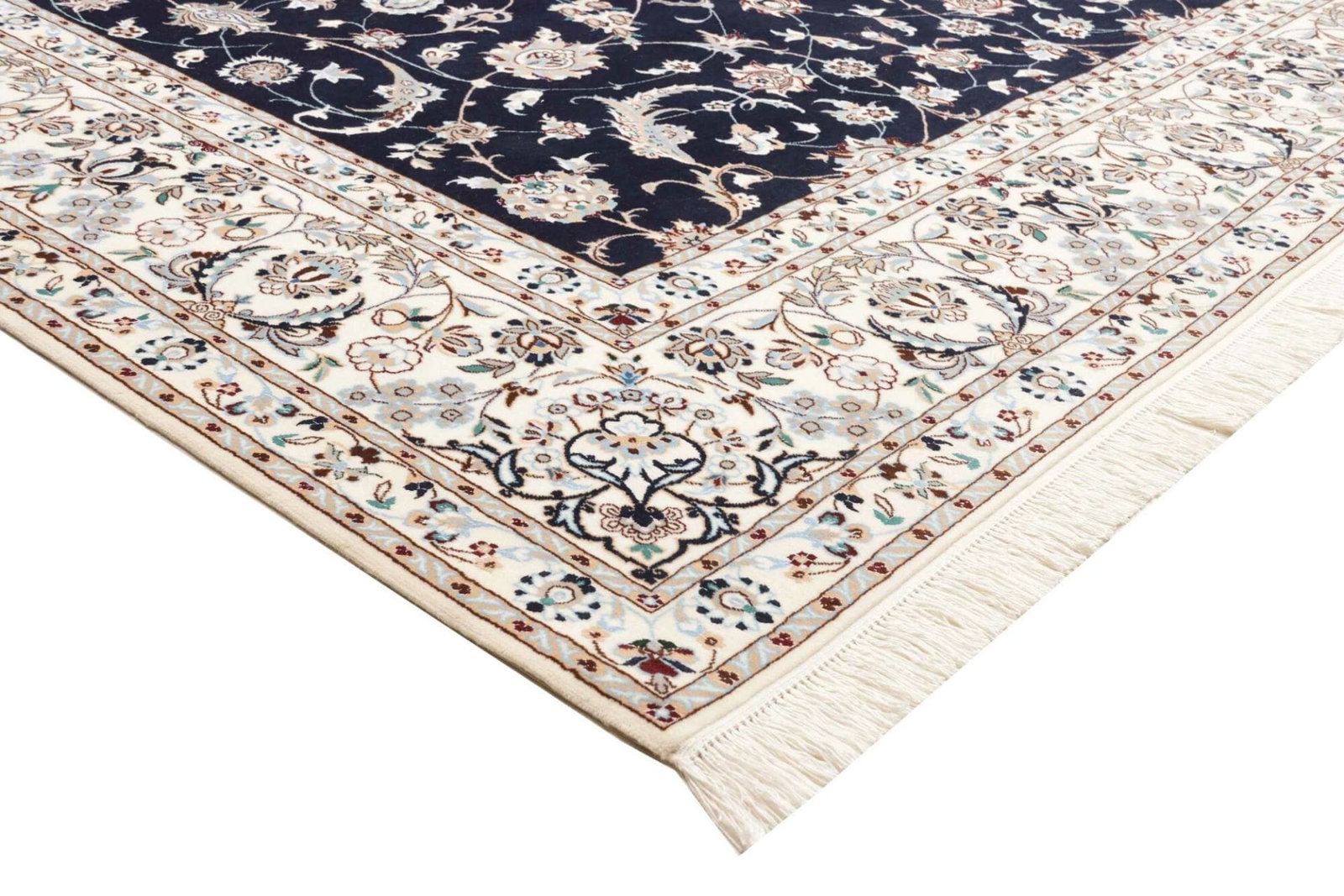 Nain Teppich | Knotendichte: ca. 900.000 Knoten/m² | Material: 100% Schurwolle, Kette: 100% Baumwolle | Größe: 212 x 261 cm | Herkunft: Iran | Zustand: Handgeknüpft, exklusive Qualität | Muster: Klassische florale Motive