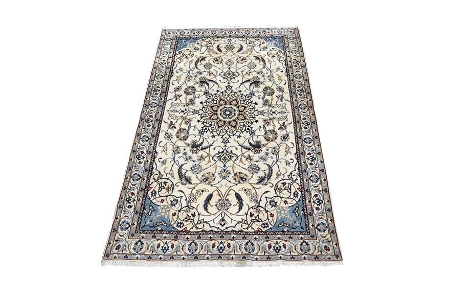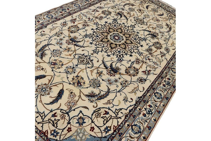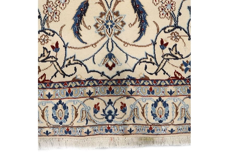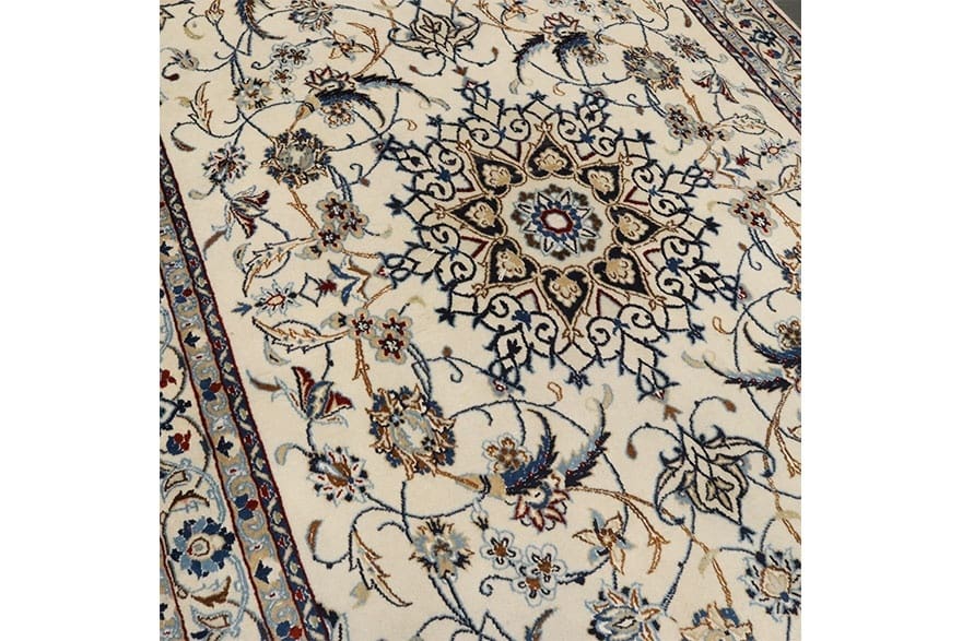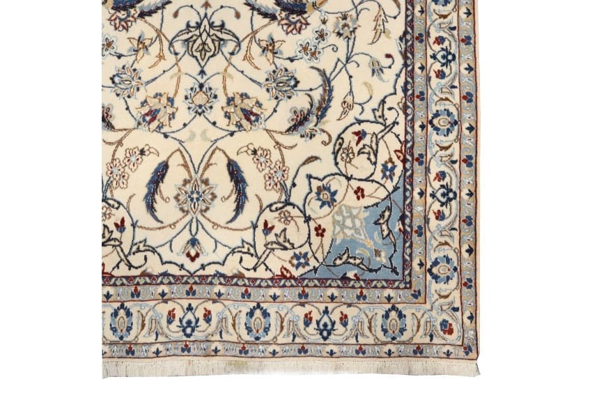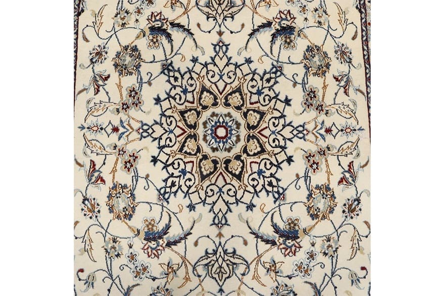Handgewebter Nain-Teppich | Knotendichte: 160.000 Knoten/m² | Material: Hochwertige Wolle und Seide | Größe: 213×122 cm | Farbe: Weiß/Beige | Zustand: Neu | Ursprung: Iran / Persien | Verarbeitung: Handgeknüpft | Dicke: ca. 8 mm | Gewicht: ca. 6 kg