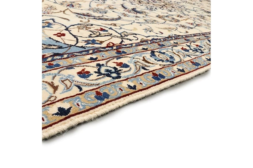 Der Nain Teppich zeichnet sich durch seine feinen Materialien und die hohe Knotendichte aus, was ihn besonders langlebig und detailreich macht. Im Vergleich zu anderen Perserteppichen sind die Muster meist weniger komplex und in helleren Farben gehalten, was ihm ein elegantes Erscheinungsbild verleiht.