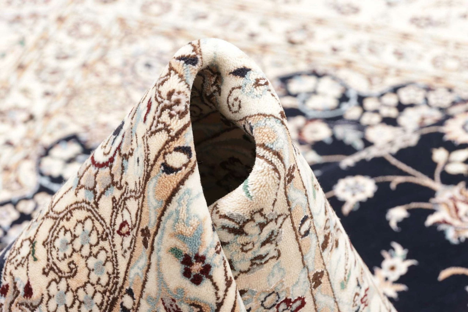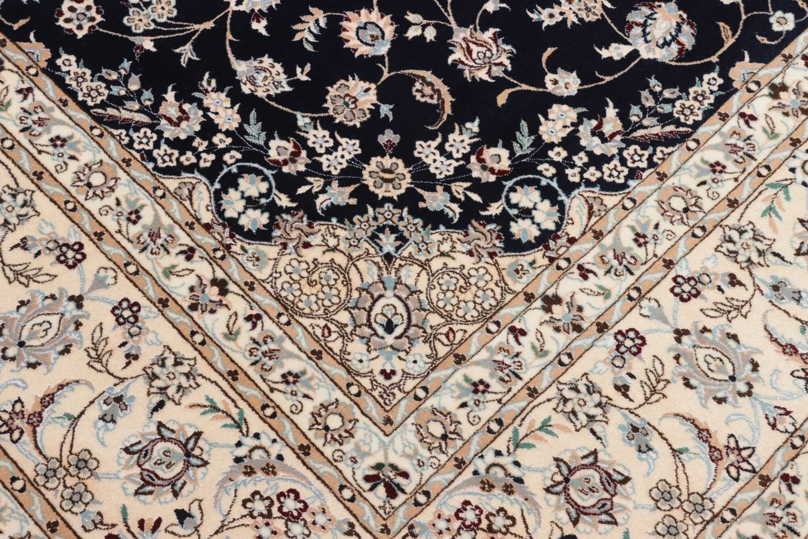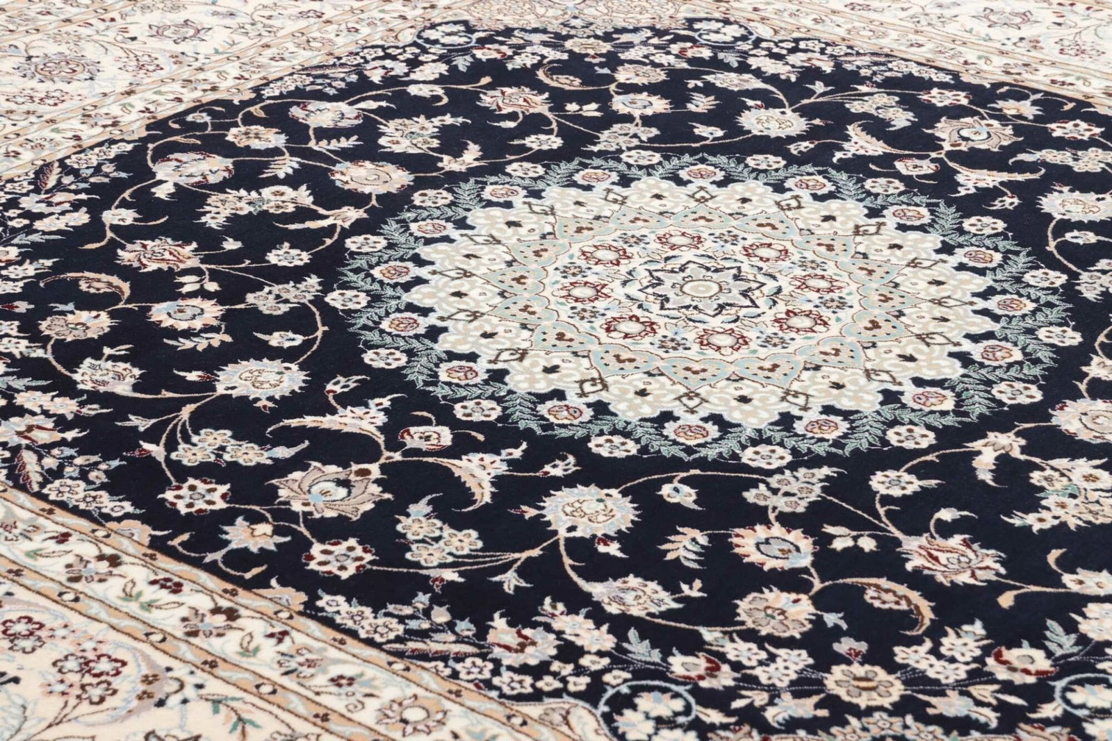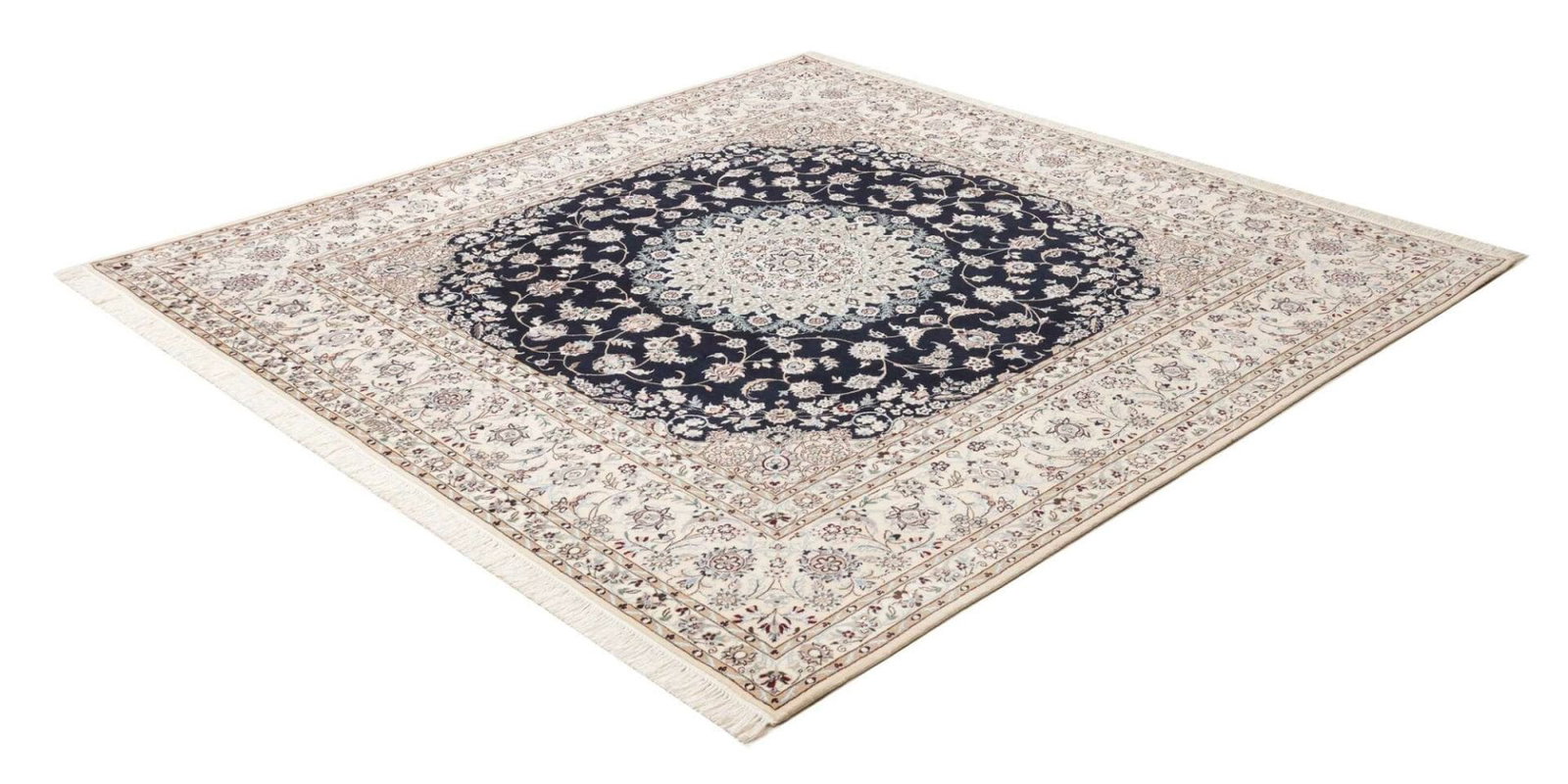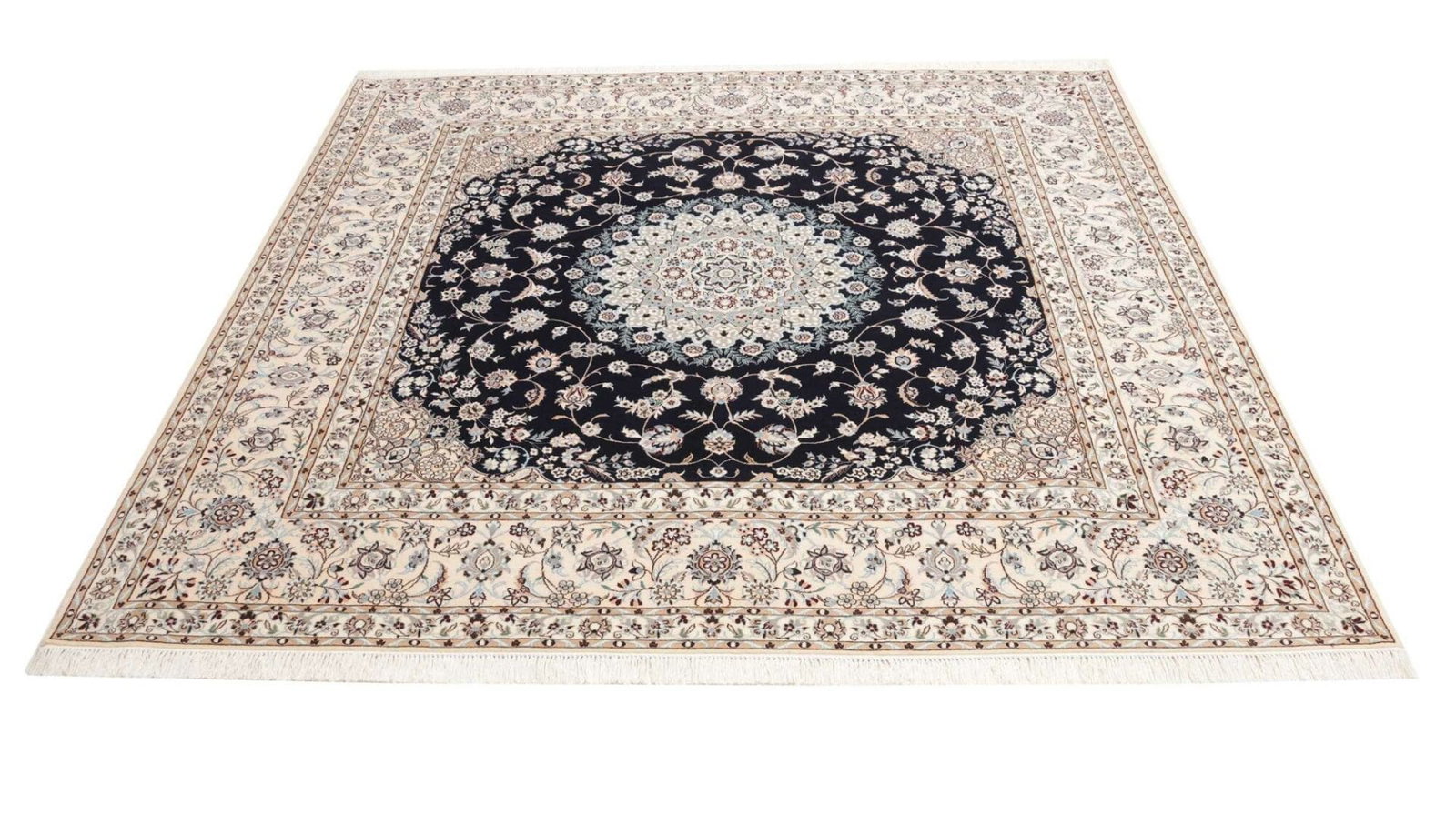 8254$Ursprünglicher Preis war: 8254$6959$Aktueller Preis ist: 6959$Nain Teppich | Knotendichte: ca. 900.000 Knoten/m² | Material: 100% Schurwolle (Flor), 100% Baumwolle (Kette) | Größe: 214 x 208 cm | Handgeknüpfte Qualität | Herkunft: Iran | Zustand: Exklusives Kunstwerk mit floralen Mustern