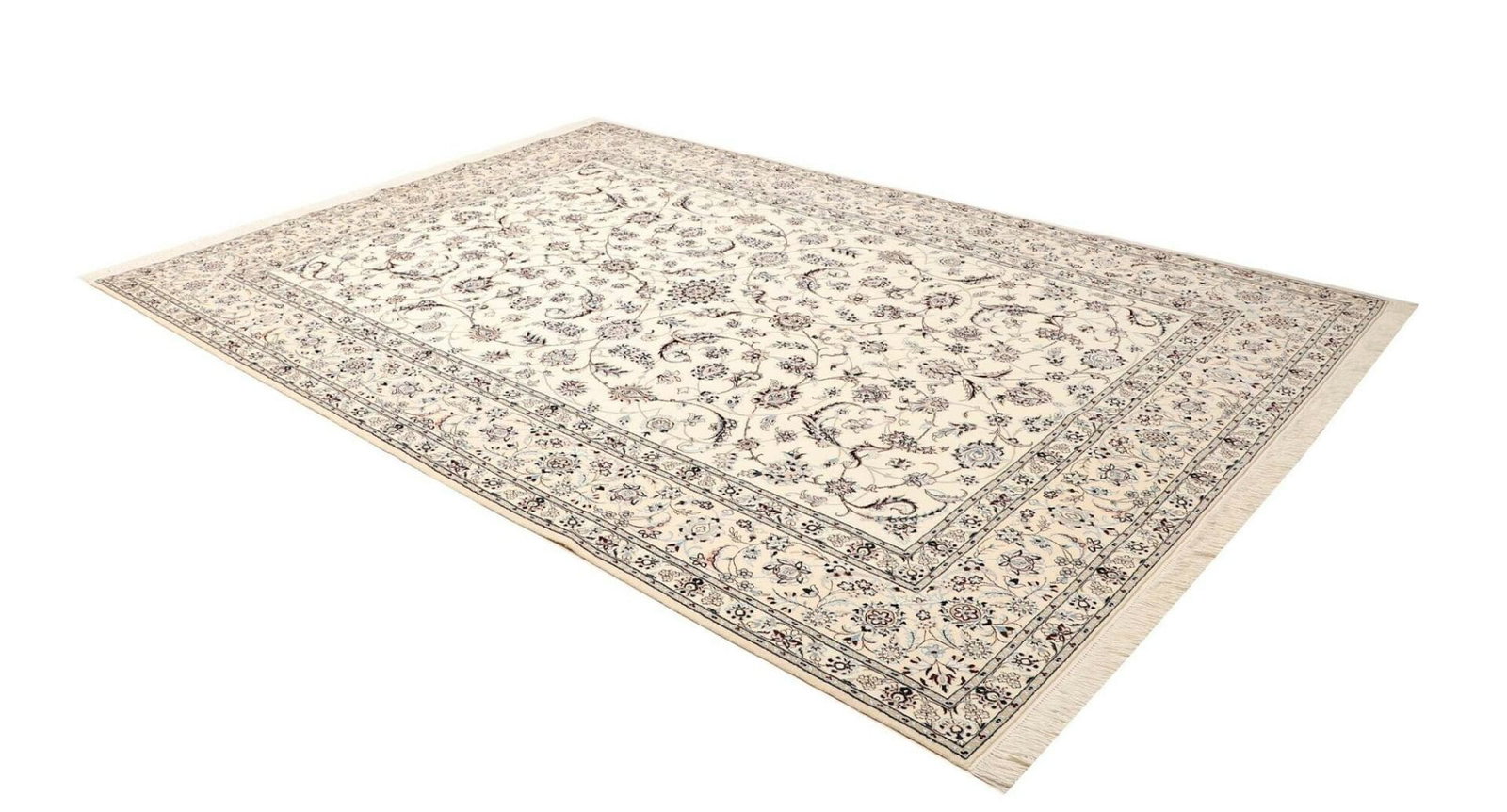 13997$Ursprünglicher Preis war: 13997$9783$Aktueller Preis ist: 9783$Nain Teppich | Knotendichte: ca. 900.000 Knoten/m² | Material: 100% Schurwolle | Kette: 100% Baumwolle | Größe: 214 x 306 cm | Zustand: Handgeknüpft, exklusive Qualität | Herkunft: Iran | Muster: Klassische florale und geometrische Motive