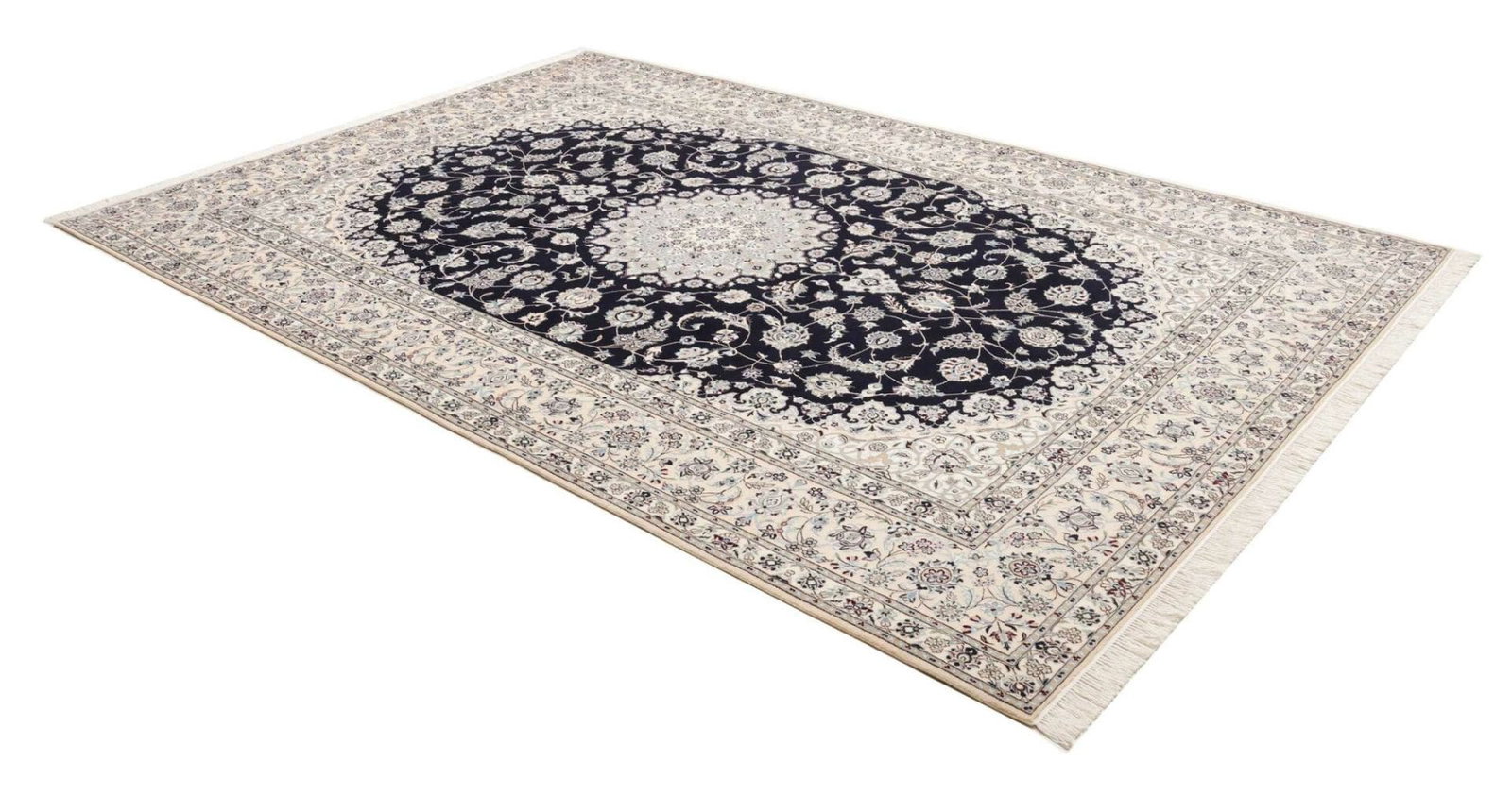 14558$Ursprünglicher Preis war: 14558$13028$Aktueller Preis ist: 13028$Handgeknüpfter Nain Teppich | Knotendichte: ca. 900.000 Knoten/m² | Material: 100% Schurwolle (Flor), 100% Baumwolle (Kette) | Größe: 214 x 317 cm | Höhe: ca. 5-7 mm | Herkunft: Iran | Exklusive florale Musterung | Weiche Haptik und schalldämpfend
