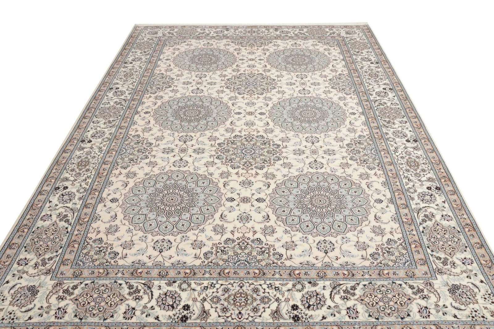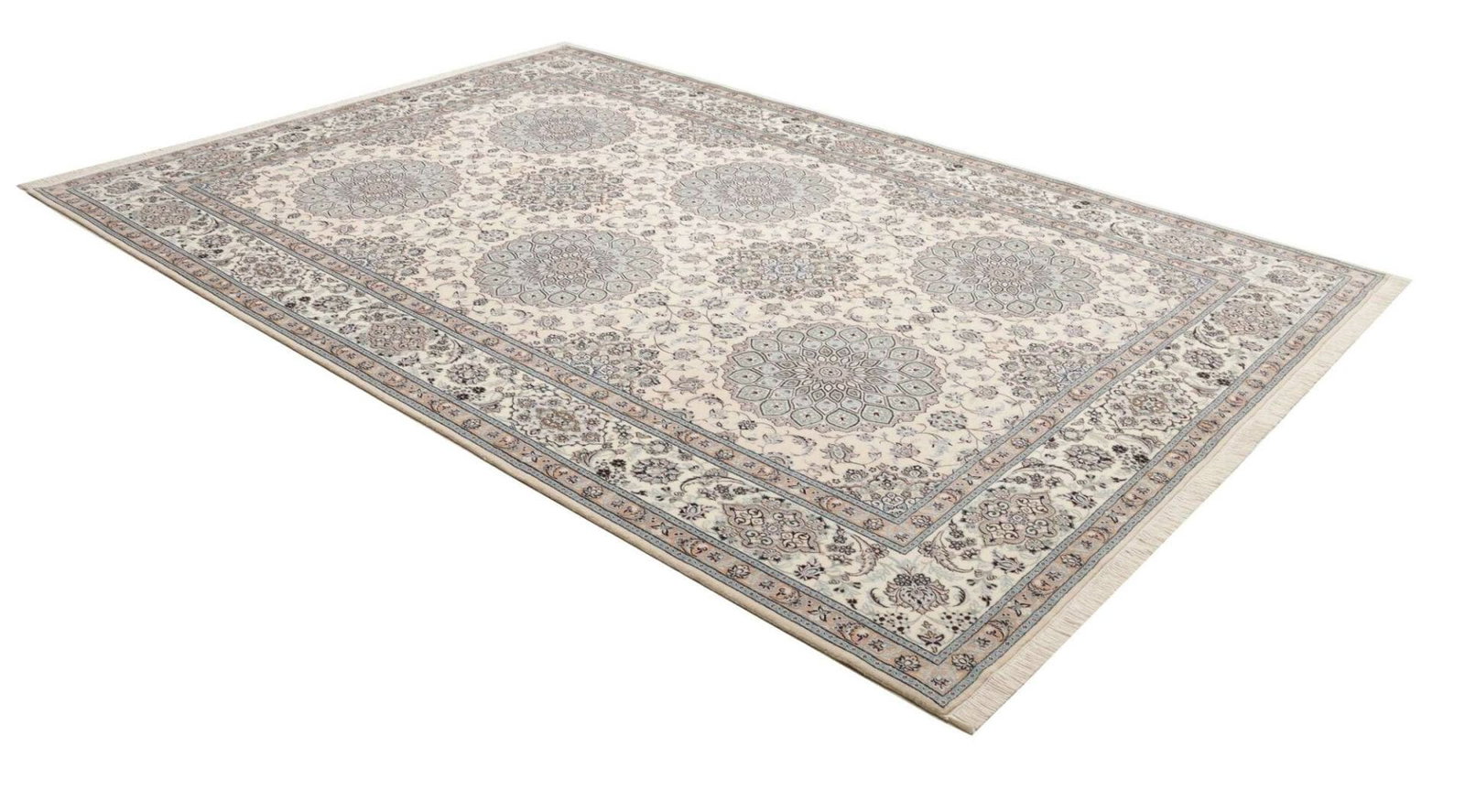 Nain Teppich 218 x 317cm, florale Muster, handgeknüpft, Perserteppich