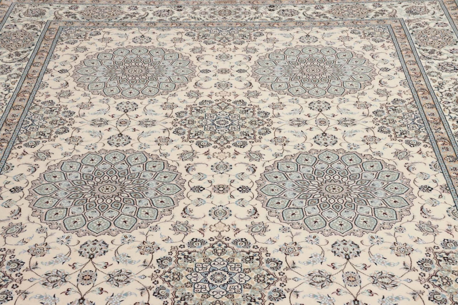 2191$Ursprünglicher Preis war: 2191$1205$Aktueller Preis ist: 1205$ In den Warenkorb(Verkauft) W1 (#228) NEU ca. 245x245cm Handgeknüpfter Nain Perserteppich mit Seide 12la