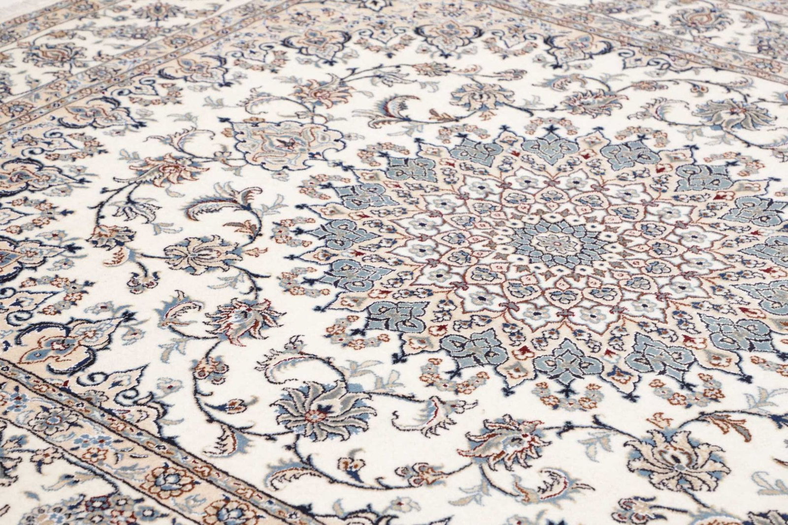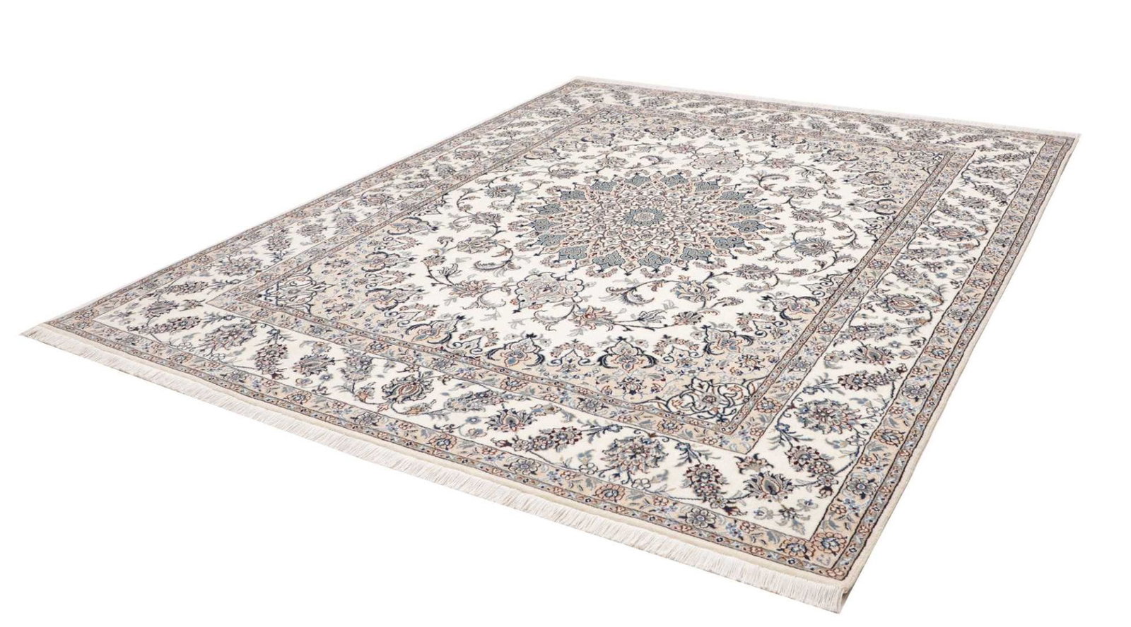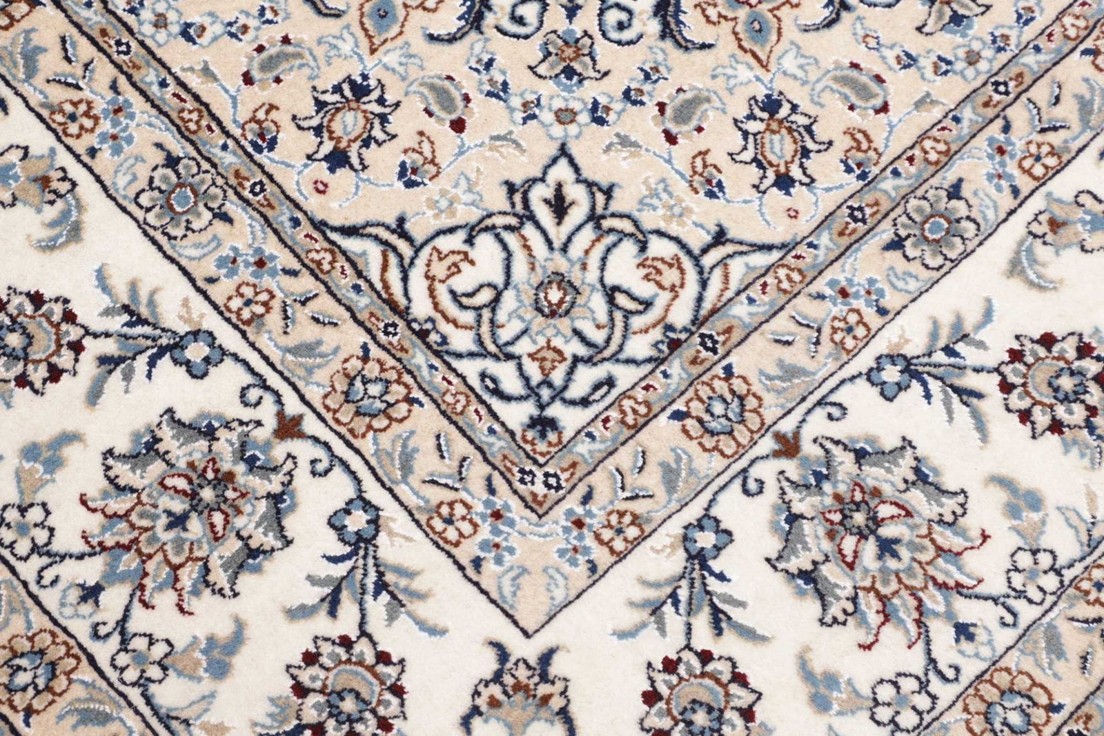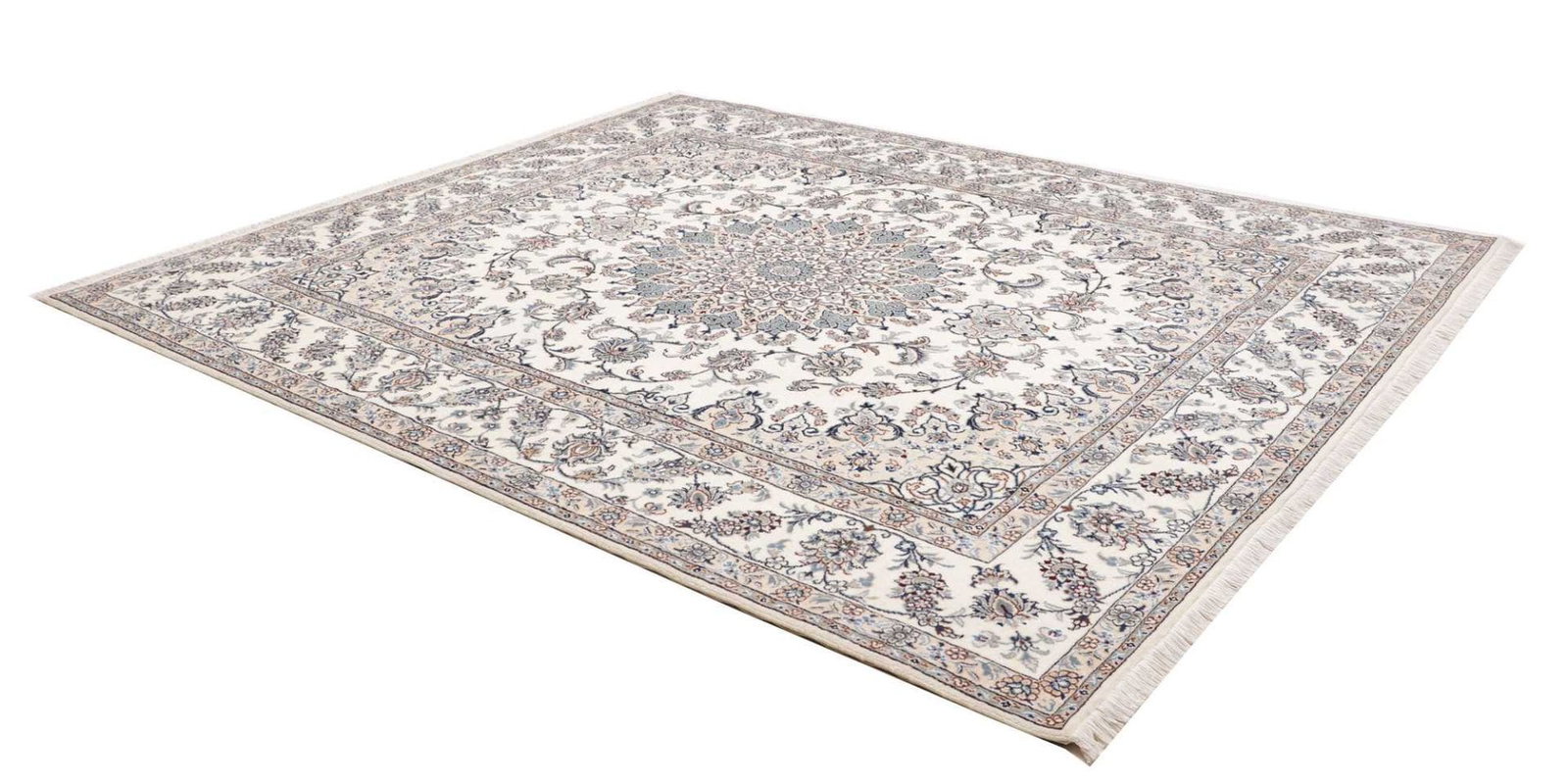 Nain Teppich | Knotendichte: ca. 200.000 Knoten/m² | Material: 100% Schurwolle (Flor), 100% Baumwolle (Kette) | Größe: 244×297 cm | Höhe: ca. 10-12 mm | Herkunft: Iran | Zustand: Handgeknüpft, exklusive Qualität | Muster: Klassische florale Motive und moderne Neuinterpretationen