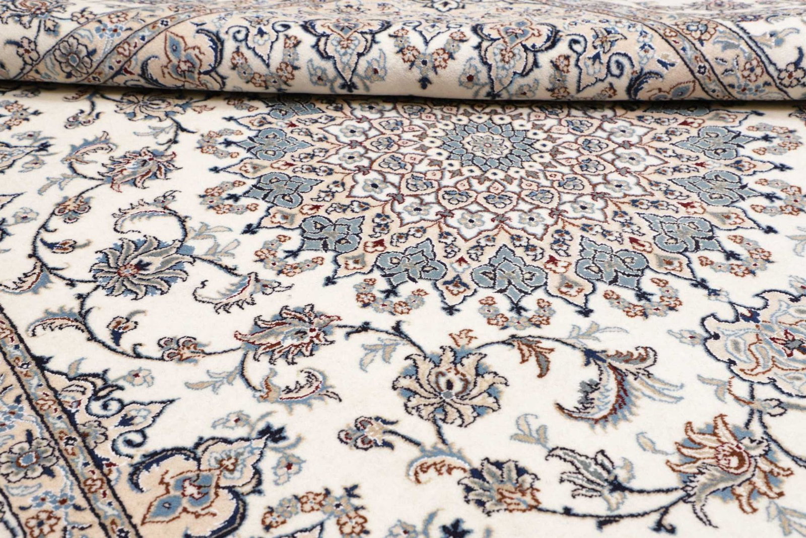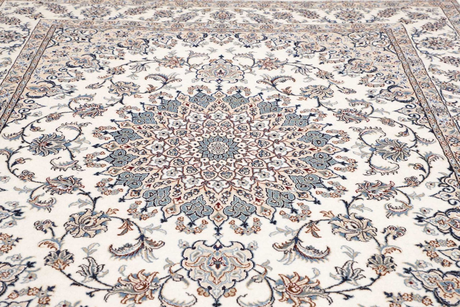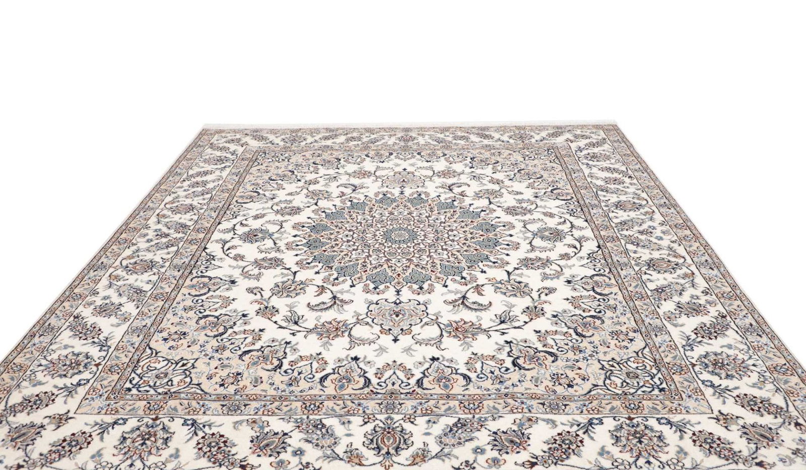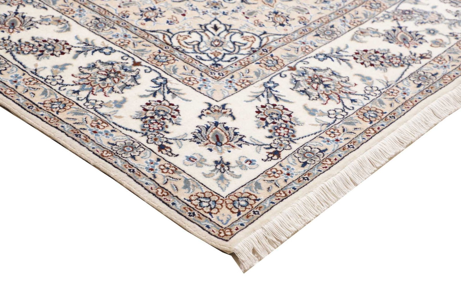 Nain Teppich | Knotendichte: ca. 200.000 Knoten/m² | Material: 100% Schurwolle (Flor), 100% Baumwolle (Kette) | Größe: 244×297 cm | Höhe: ca. 10-12 mm | Herkunft: Iran | Zustand: Handgeknüpft, exklusive Qualität | Muster: Klassische florale Motive und moderne Neuinterpretationen