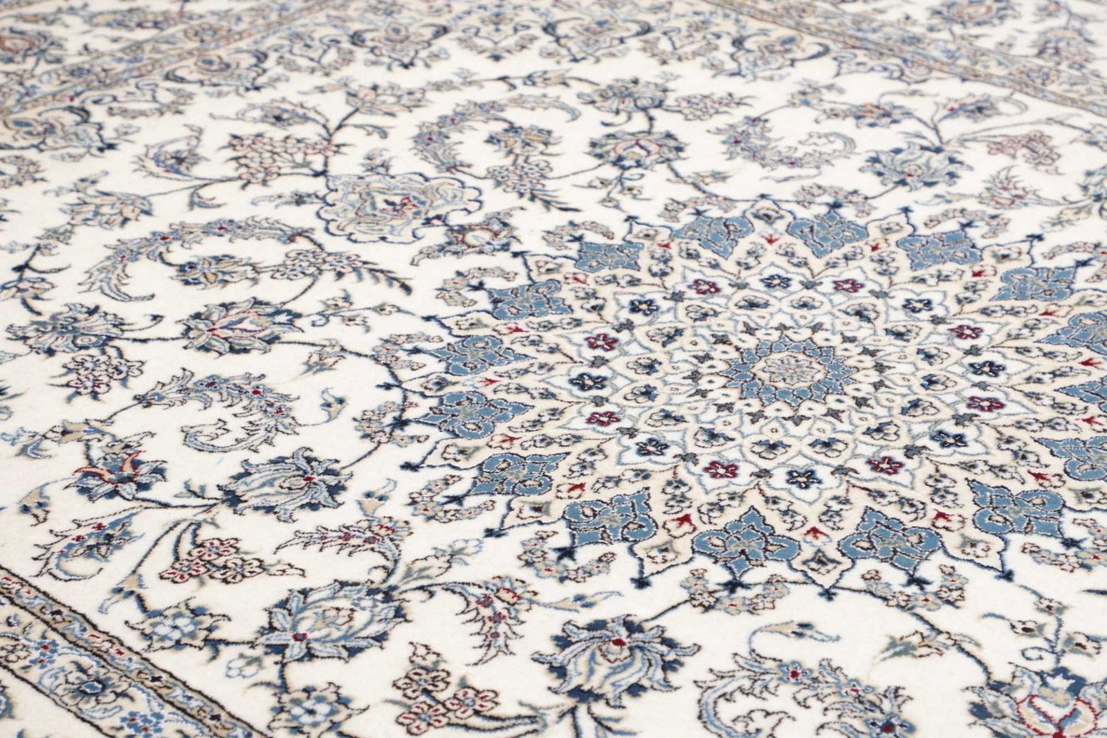 Nain Teppich | Knotendichte: ca. 200.000 Knoten/m² | Material: 100% Schurwolle (Flor), 100% Baumwolle (Kette) | Größe: 252 x 343 cm | Zustand: Exklusiv und hochwertig | Herkunft: Iran | Handgeknüpfte Qualität | Florale und geometrische Muster