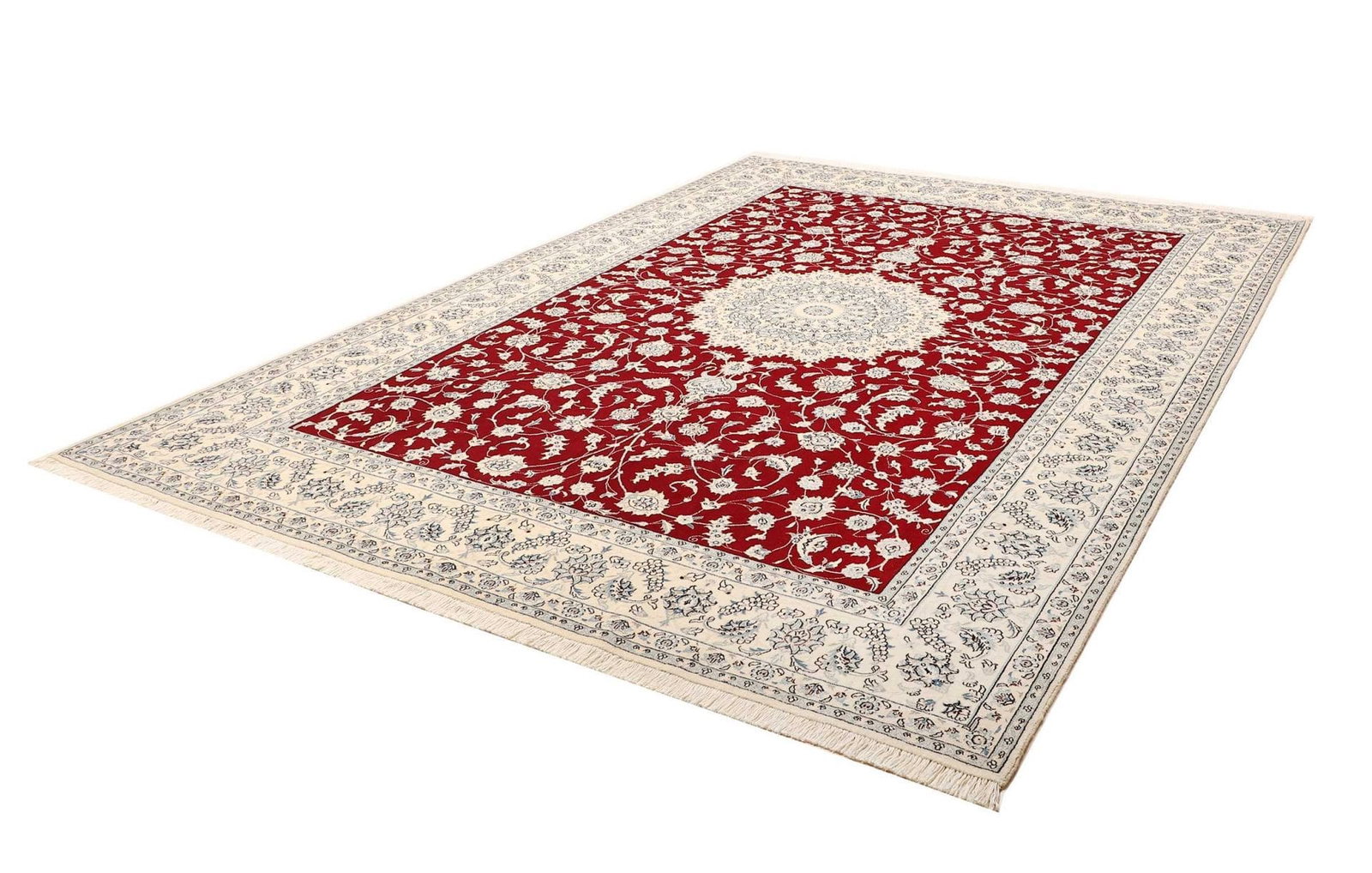 Der Nain Teppich ist ein exquisiter handgeknüpfter Perserteppich, der mit seinem floralen Muster und seiner hohen Knotendichte begeistert. Dieses kunstvolle Stück vereint Tradition und Handwerkskunst aus der renommierten Teppichstadt Nain im Iran. Die Verwendung erstklassiger Materialien und die sorgfältige Knüpftechnik machen diesen Teppich zu einem Highlight in jeder Inneneinrichtung.