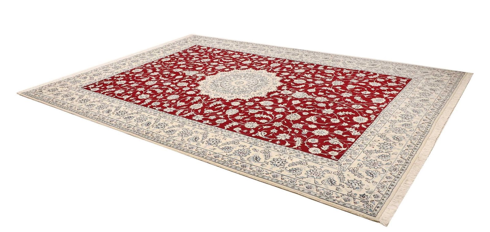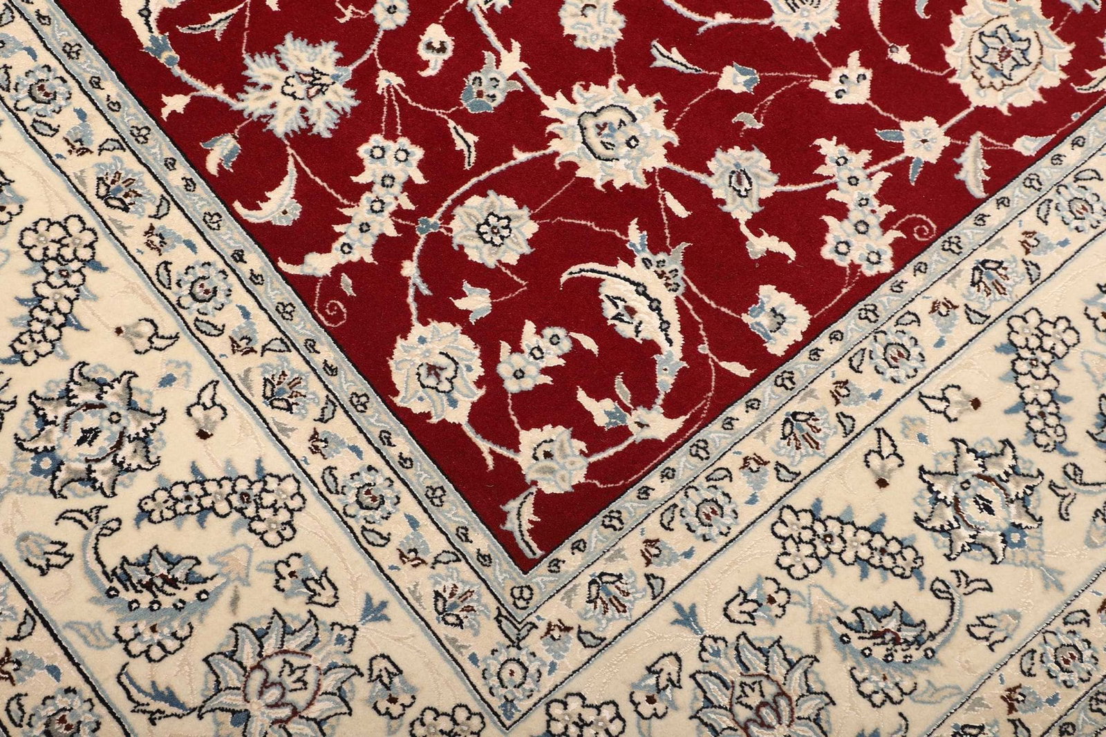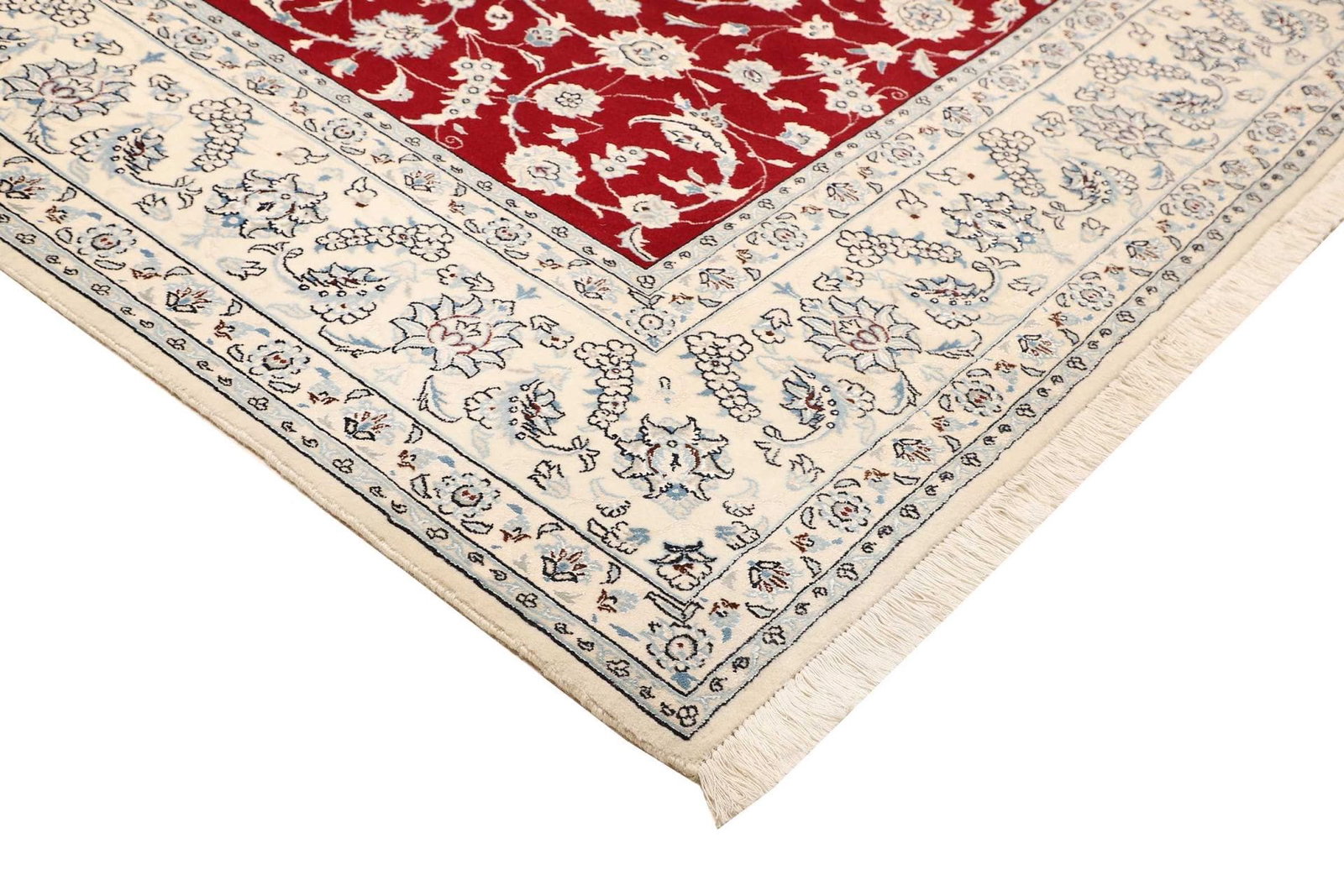 Nain Teppich | Knotendichte: ca. 500.000 Knoten/m² | Größe: 253 x 340 cm | Material: 100% Schurwolle (Flor), 100% Baumwolle (Kette) | Höhe: ca. 10-12 mm | Herkunft: Iran | Zustand: Exklusiv und handgeknüpft | Muster: Klassische florale Motive und moderne Interpretationen