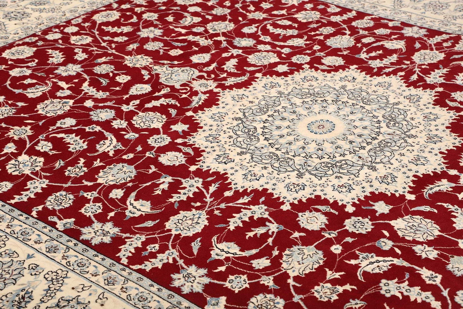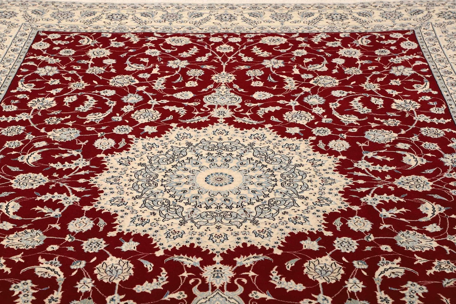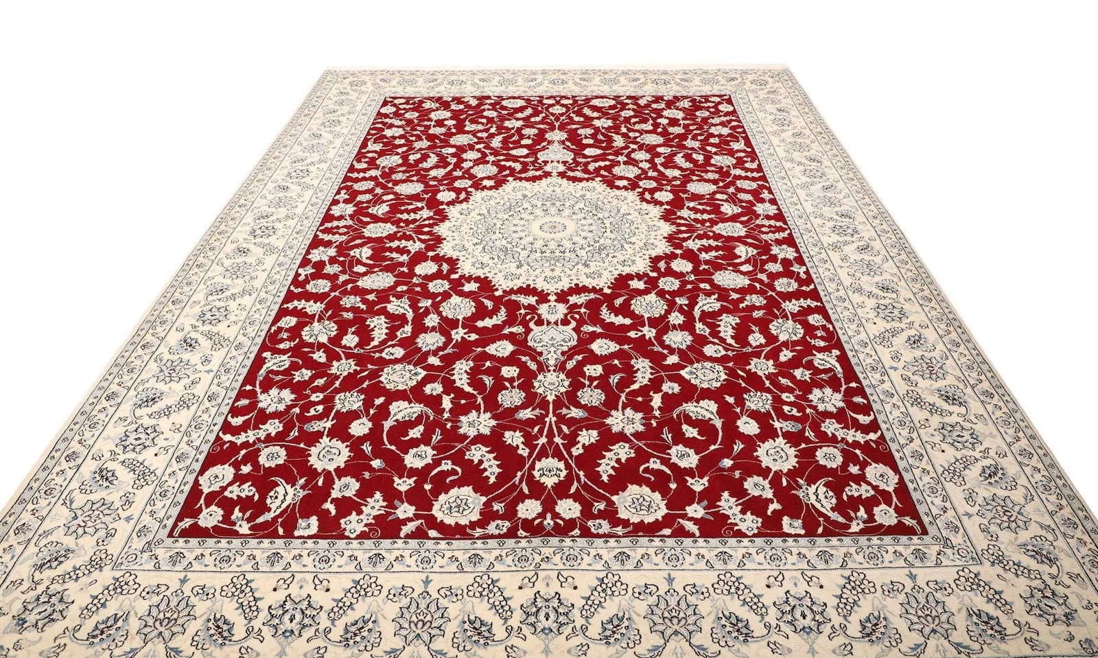Nain Teppich | Knotendichte: ca. 500.000 Knoten/m² | Größe: 253 x 340 cm | Material: 100% Schurwolle (Flor), 100% Baumwolle (Kette) | Höhe: ca. 10-12 mm | Herkunft: Iran | Zustand: Exklusiv und handgeknüpft | Muster: Klassische florale Motive und moderne Interpretationen