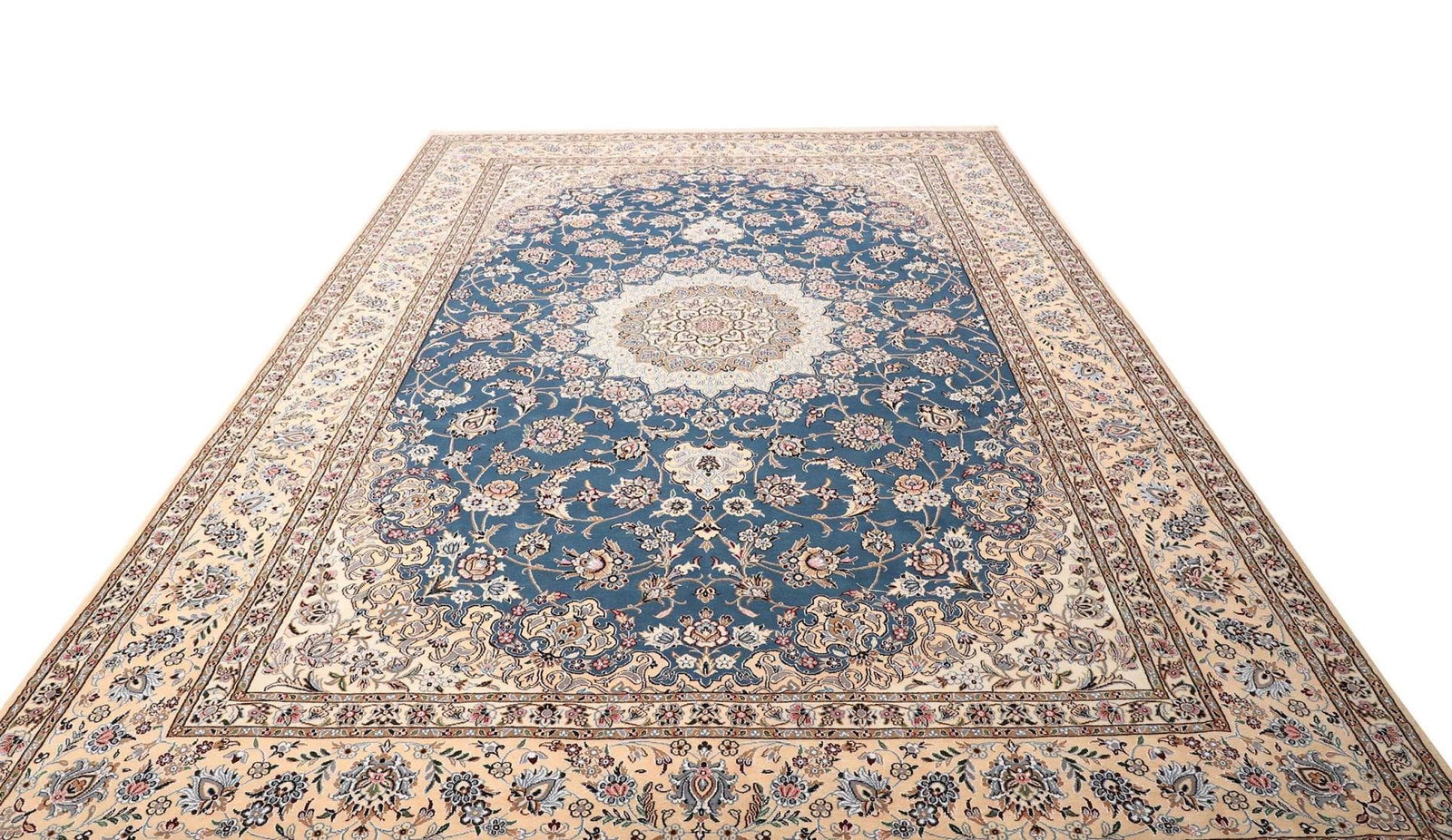 9447$Ursprünglicher Preis war: 9447$7540$Aktueller Preis ist: 7540$Nain Teppich | Knotendichte: ca. 500.000 Knoten/m² | Material: 100% Schurwolle (Flor), 100% Baumwolle (Kette) | Größe: 256 x 359 cm | Verarbeitung: Handgeknüpft | Herkunft: Iran | Zustand: Exzellente Qualität | Muster: Klassische florale Motive und Neuinterpretationen