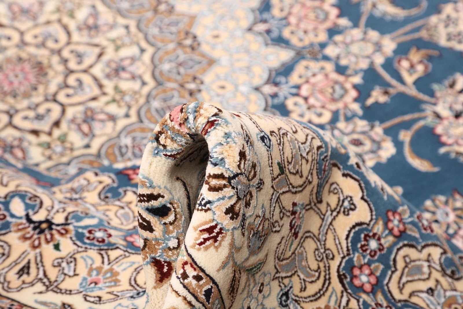 Nain Teppiche sind oft kunstvoll mit floralen und geometrischen Motiven gestaltet, die die Liebe zur Natur und zur Schönheit widerspiegeln. Das florale Muster ist nicht nur dekorativ, sondern trägt in der persischen Kultur auch symbolische Bedeutungen, wie Fruchtbarkeit und Wohlstand.